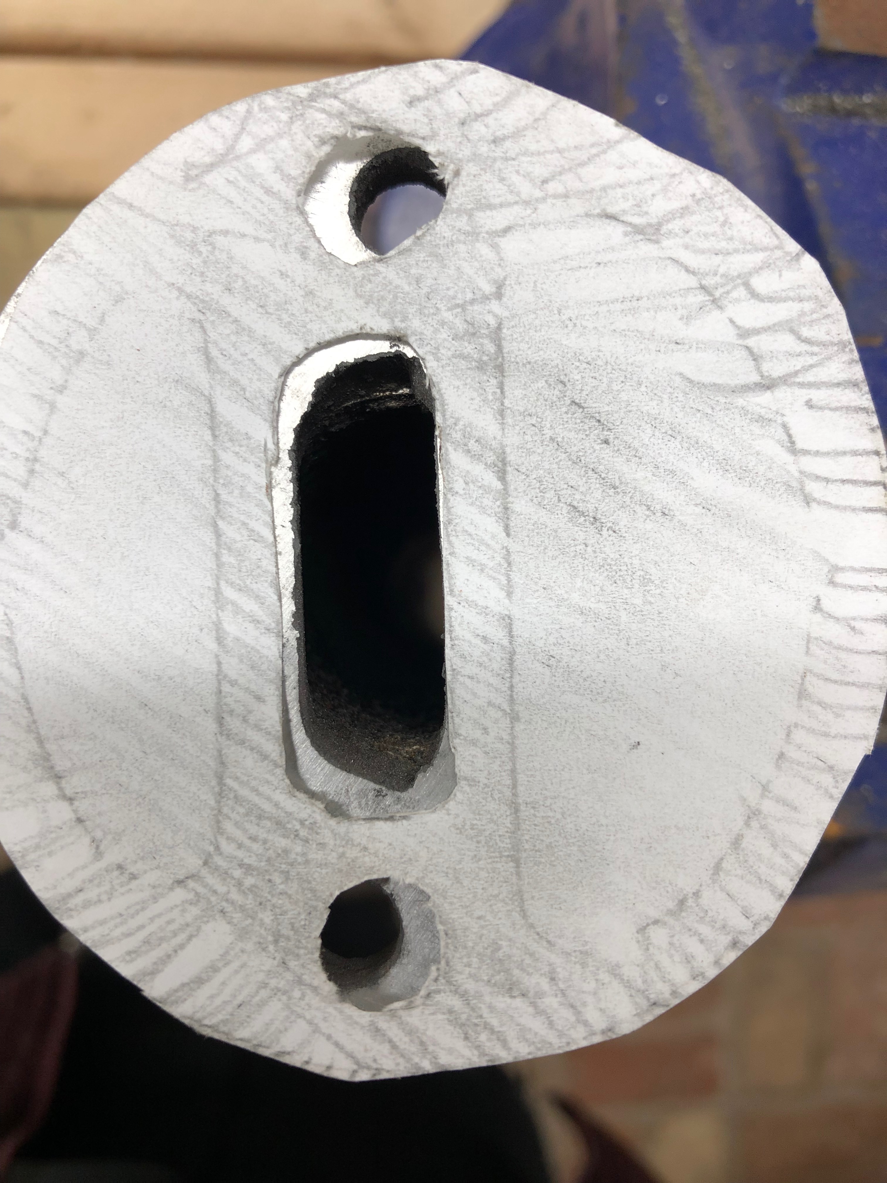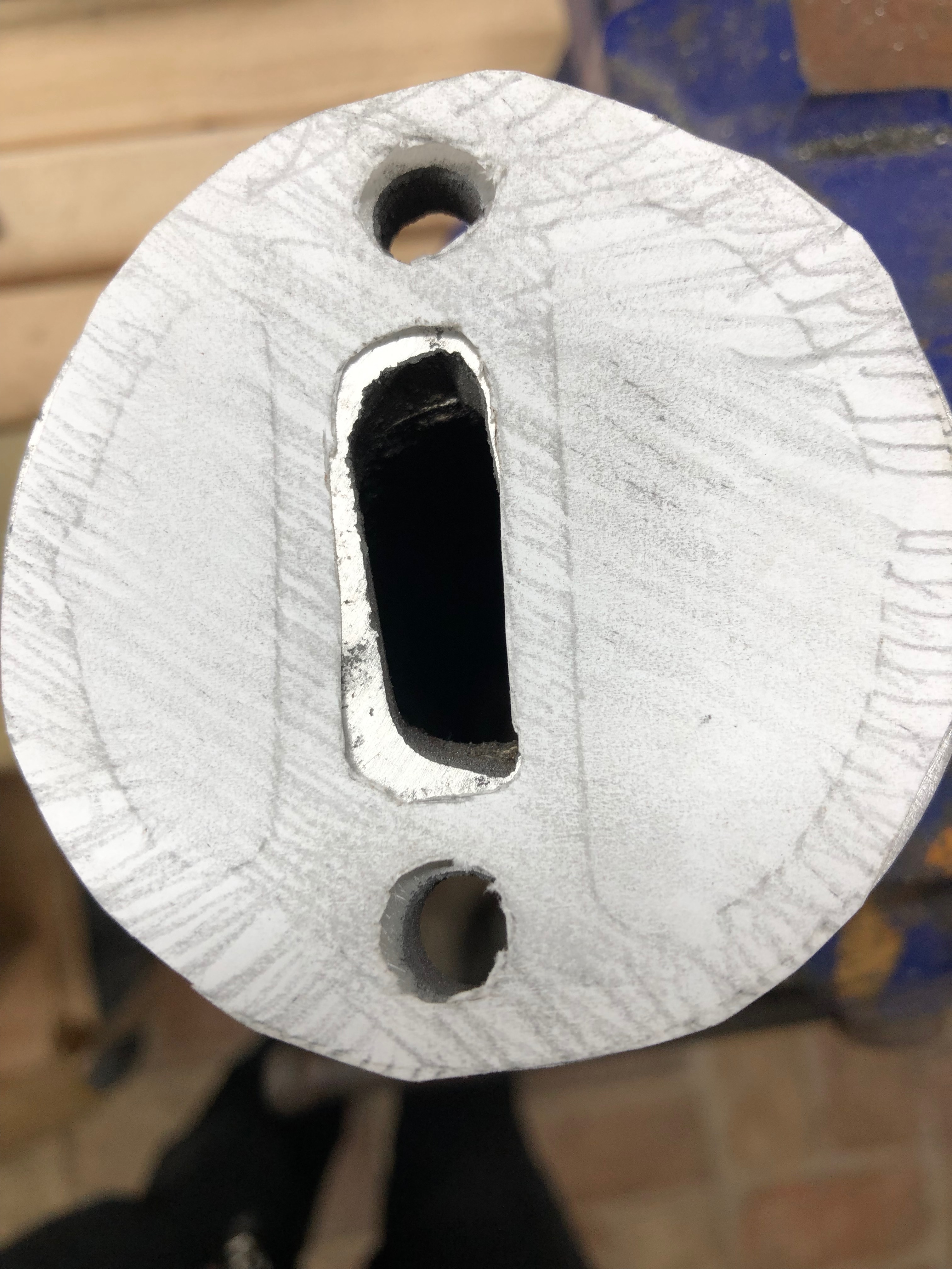 Showing misalignment of bolt holes and undersize port on inner exhaust