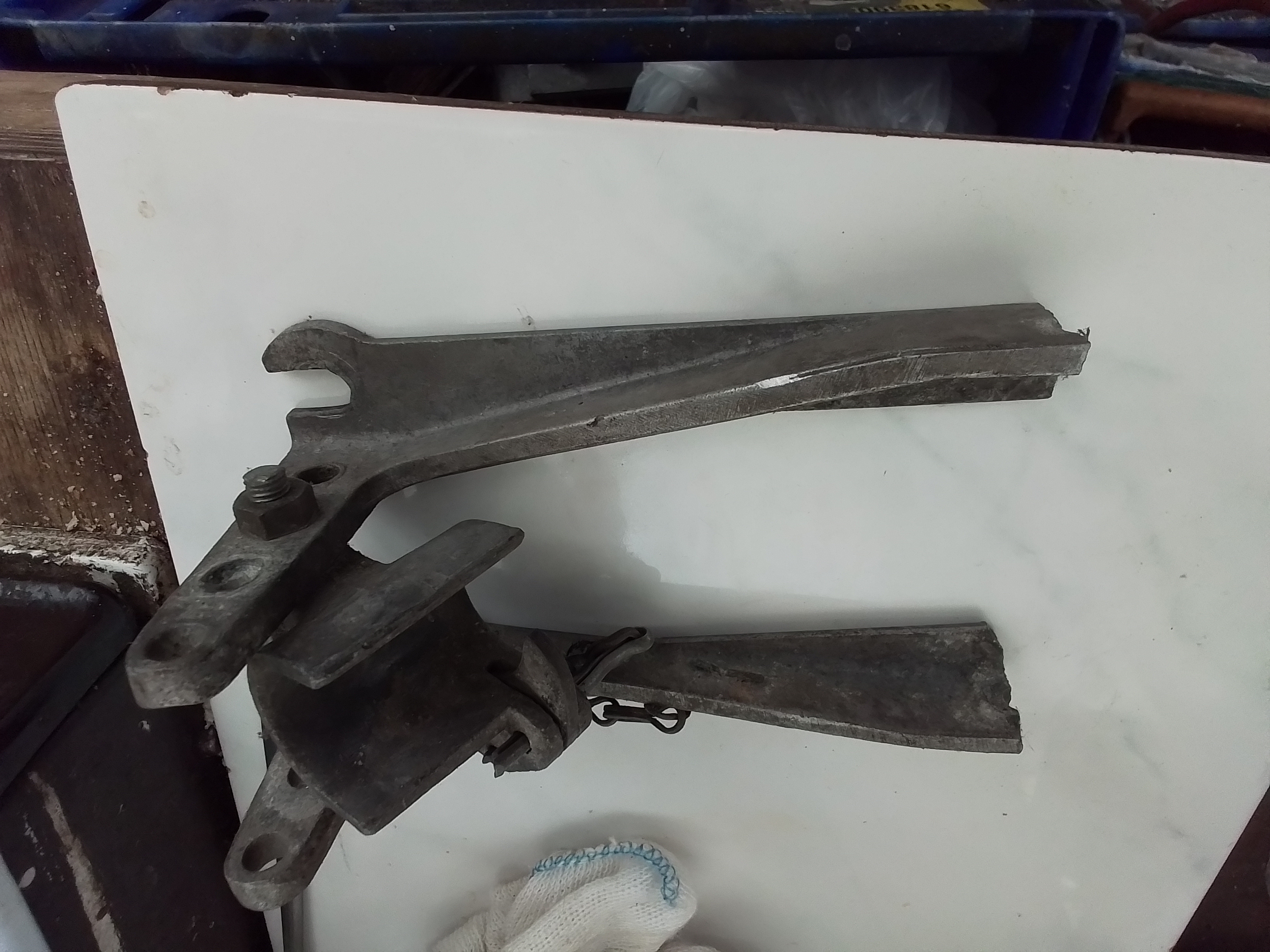 My guess is spring first, then lever through the large beveled hole, then washer and nut ?