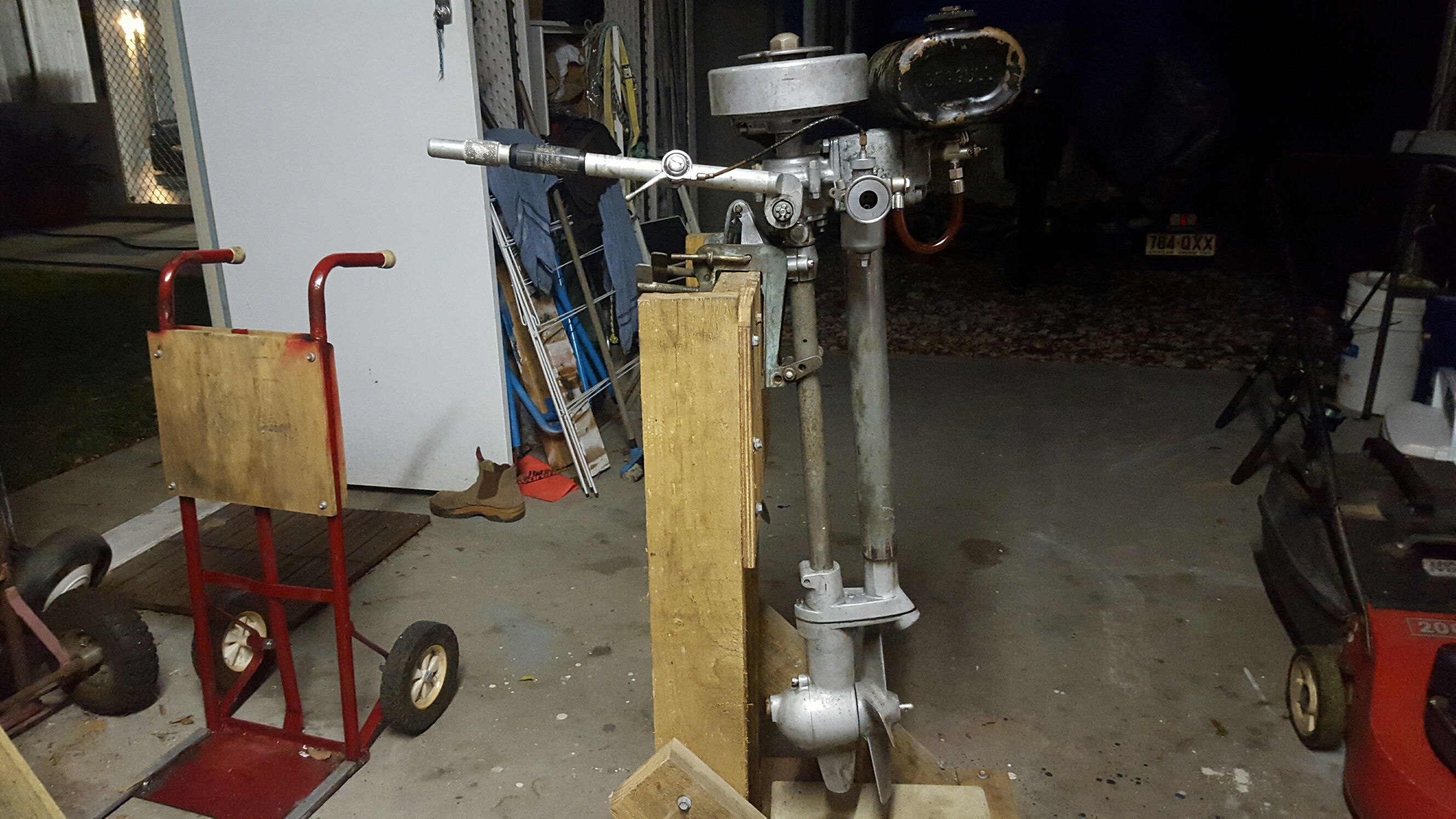 Hi M, great find in really good condition for its age I have one the same year and am in the process of restoring hopefully to the condition of what you have found in your shed. I paid $150 AUS for mine but looks very neglected. You can see in the pic, the chrome is shot, cable up the creek and fuel tank is knocked about unlike yours. Just thought I would give you a comparison image. Hope this helps. Oh, also when you start working on Seagulls with help from the forum it becomes so interesting. But when you get them on a boat it becomes (well words escape me).