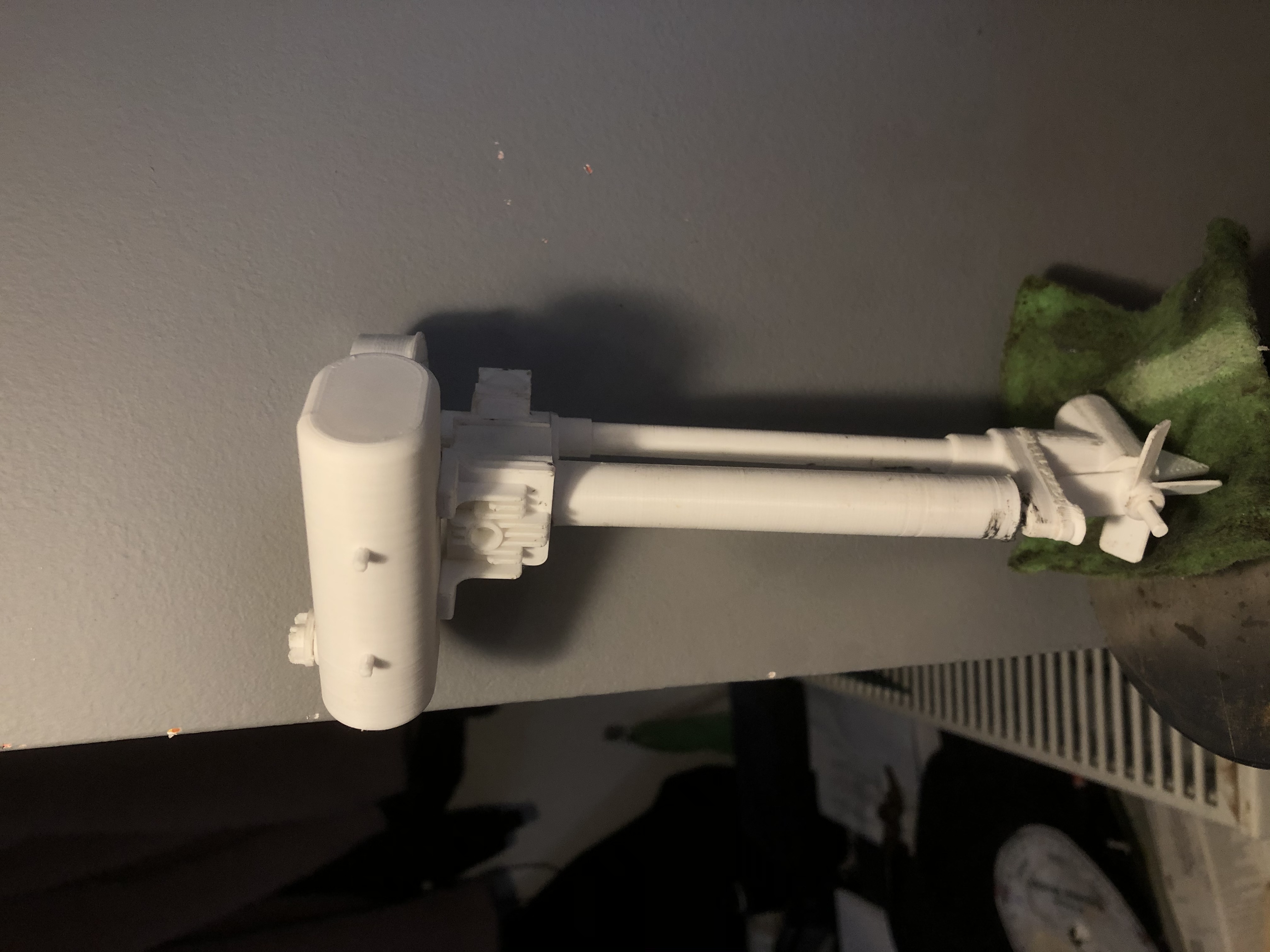 As a first attempt I’m quite happy with it, done with a .4 mm nozzle with fast print speed, was really just to test tolerances. Got some .2 nozzles in the post so second attempt should have a nicer finish, thumb screws in the transom bracket, spinning flywheel and moving tiller arm.