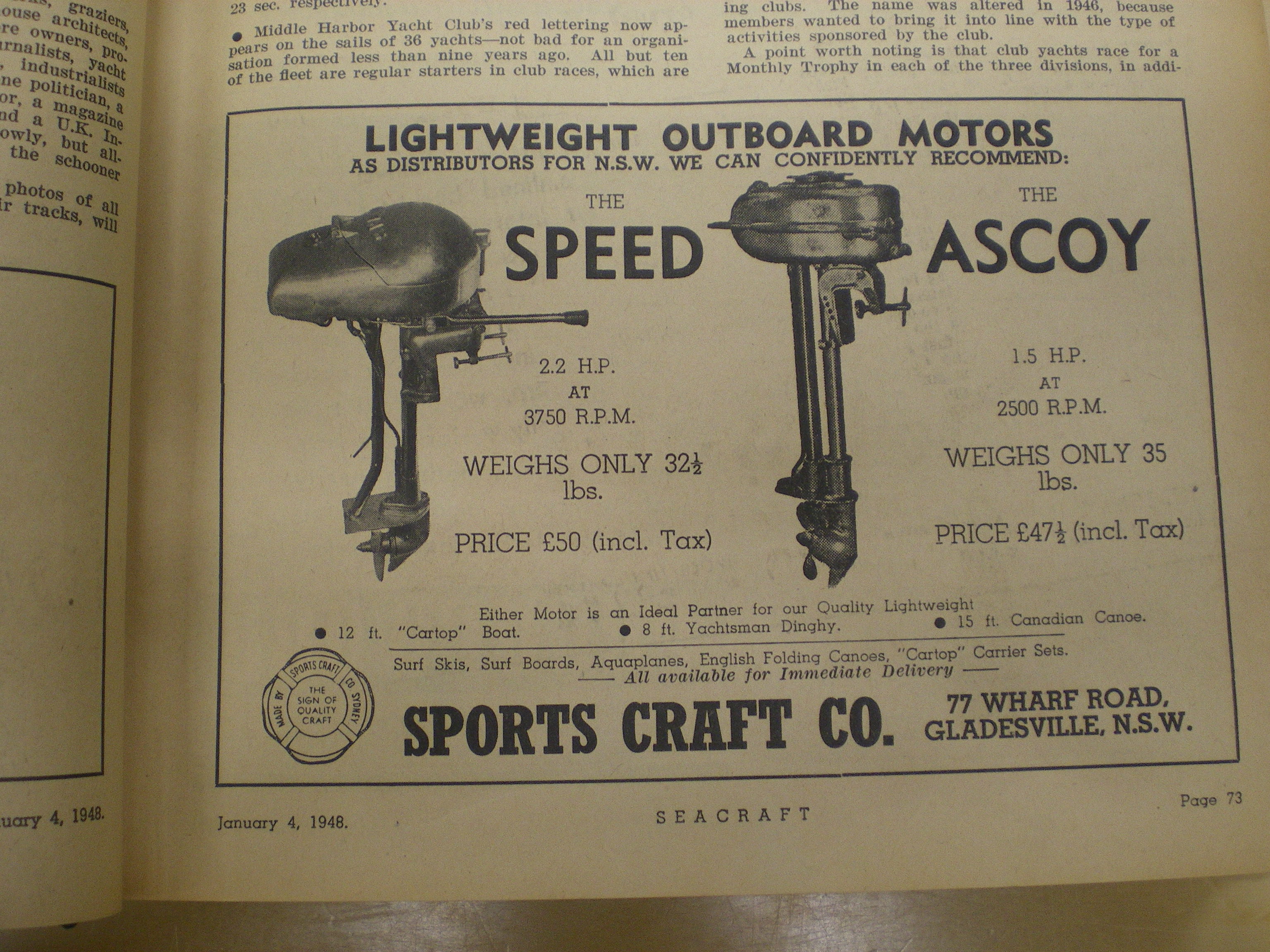 Seasprite, Seamaster, Speed ?, Verity, Vinco and Seagull outboards.