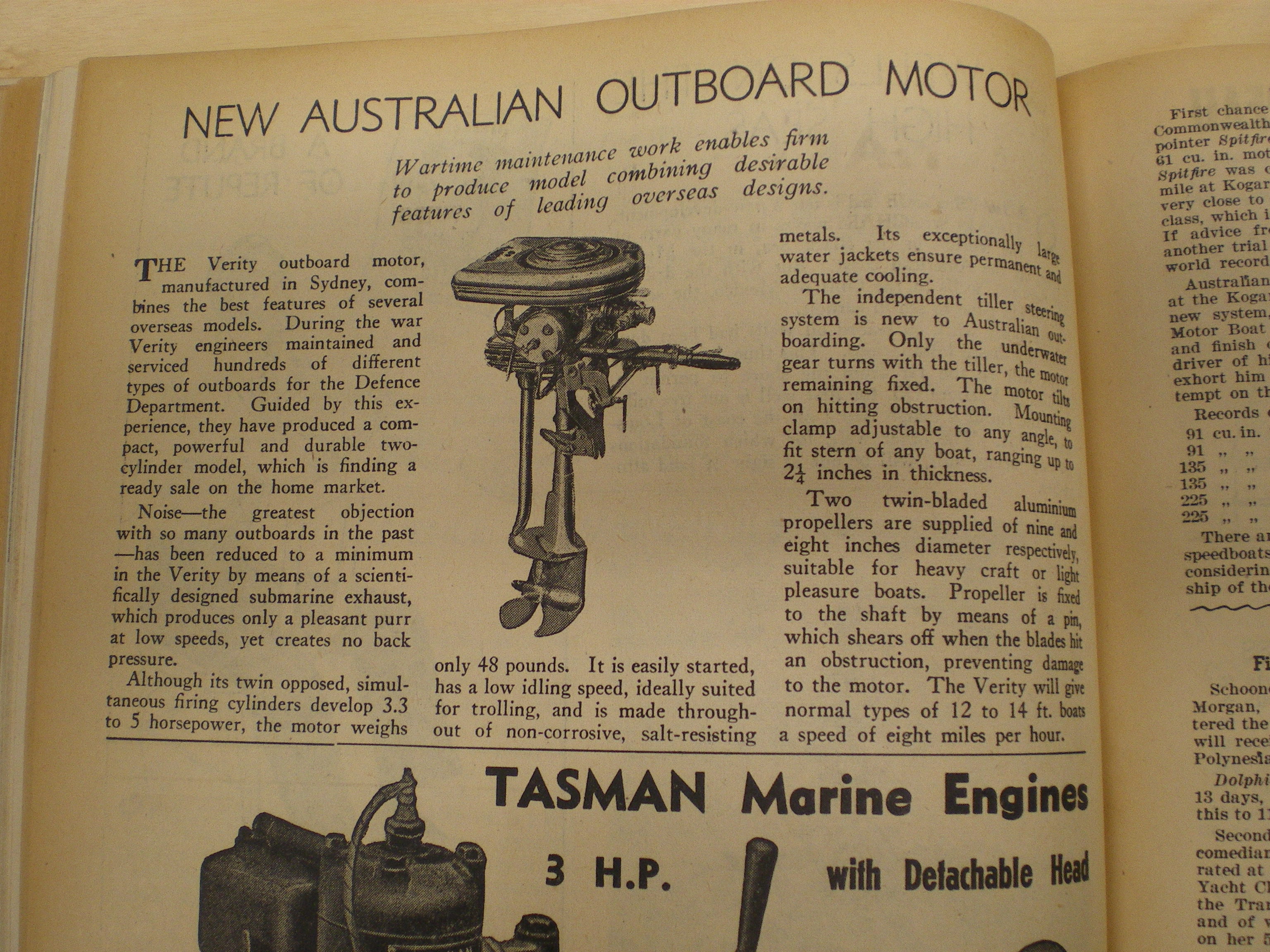 Speed? Really interesting thing, once again Hunn noted as being one of the first Australian outboards..........incorrect.