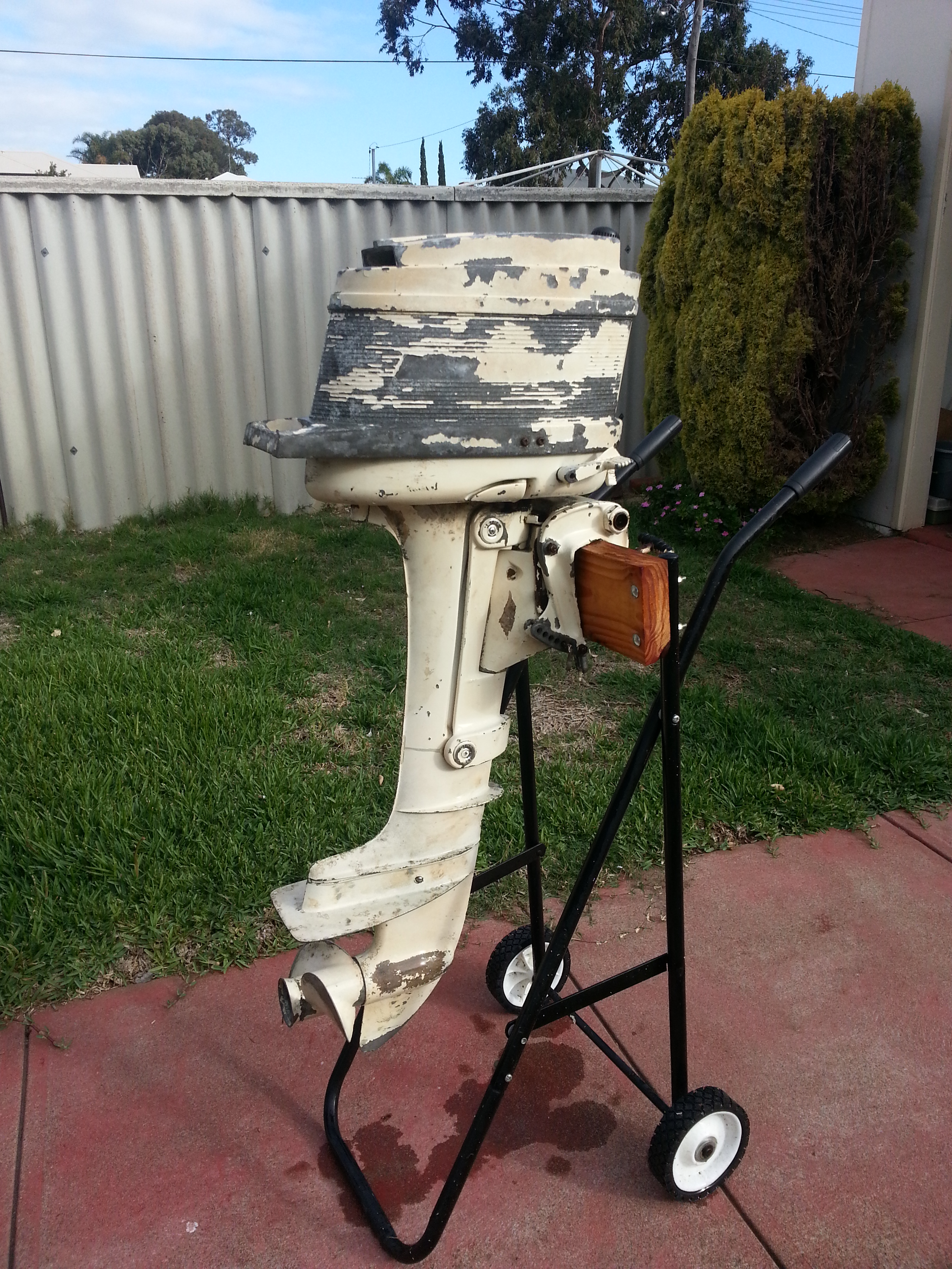 Story goes that this was repaired by R. A. Whiteside & Co in Fremantle and was never picked up by the owner. Bob Whiteside, business owner and respected boating community participant in Perth, retired and kept the motor for some reason.