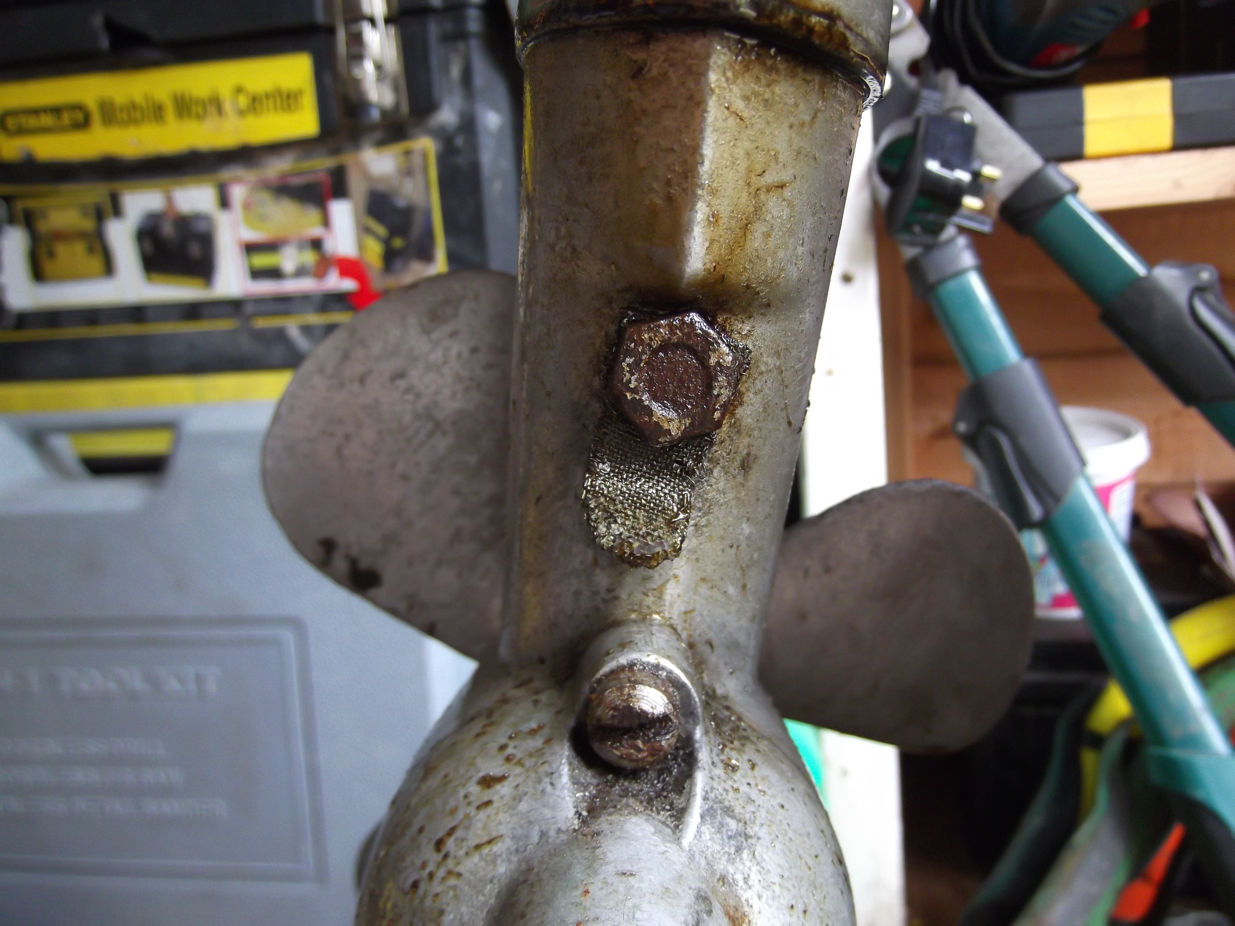 now the bad news at sometime in its life it has fell over and the tiller stud was snapped, a very heavy steel bracket was made to attach the tiller on to,