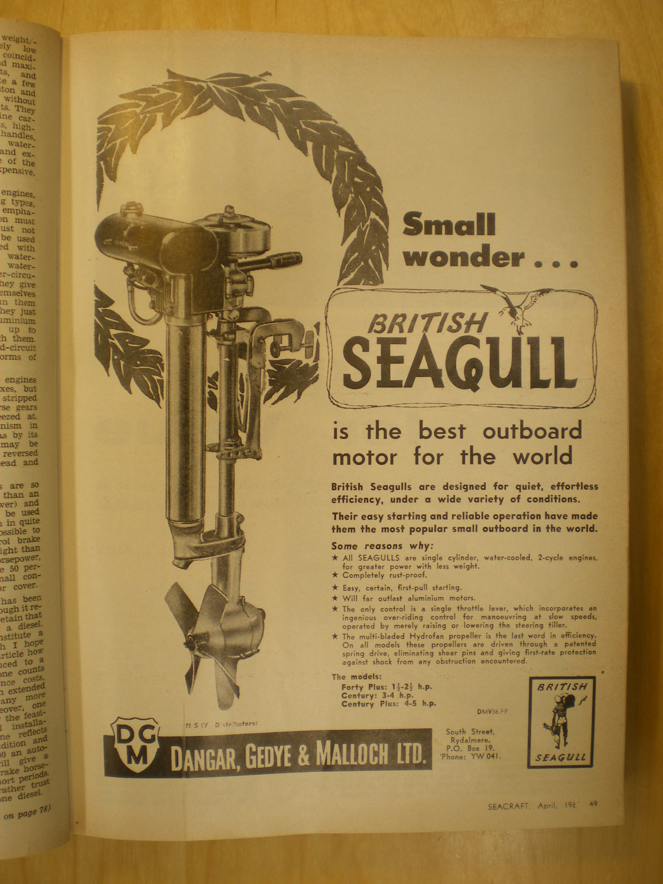 So far to summarise The British Seagull was certainly imported and sold throughout Australia apart, it appears, from Northern Territories. New Zealand has had two dealers in Auckland. Spedding Ltd in Dec '46 and Wisemans in March '51. The first portrayal of the 102 sub ejector was in July '52 but most likely produced a year or few before that. We already know that Seagull images on their adverts where not always correct for what they were selling ie old images/prints. It did indeed seem that there were import restrictions on British Seagull. There was a lull in adverts for British Seagull from April 1955 to August 1960. There has been some conjecture that the Australian Seagull that utilise many Seagull parts, The Olympic, was being built during this period. As per viewtopic.php?f=17&t=5305&p=44692&hilit=olympic#p44692 Bruce has a '52 one built before the restrictions, so that seems a fallacy. I have seen no adverts for the Olympic apart from the one on the main SOS site. I need to search further afield. Strangely enough the Anzani and Penta where advertised during this restrictive period?? More to come next week. Are you bored yet? Ha Ha.
