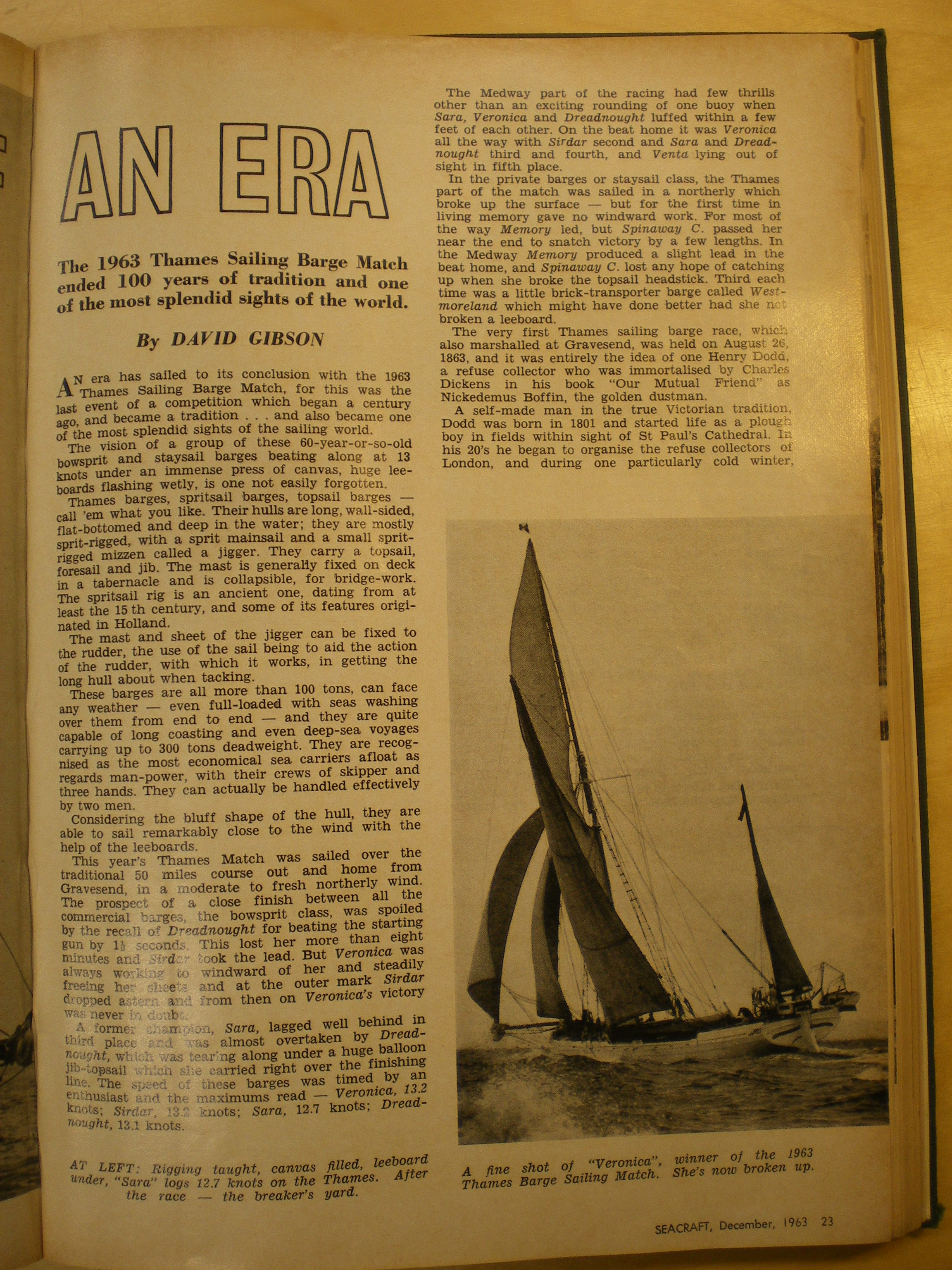 Edit: 7.35pm 21/07. The Au pound was valued at $2, so a motor was actually 2 weeks worth plus OT. Here is an interesting article. Thames barge race under sail. Love to be a crew. Cool. Dec '63