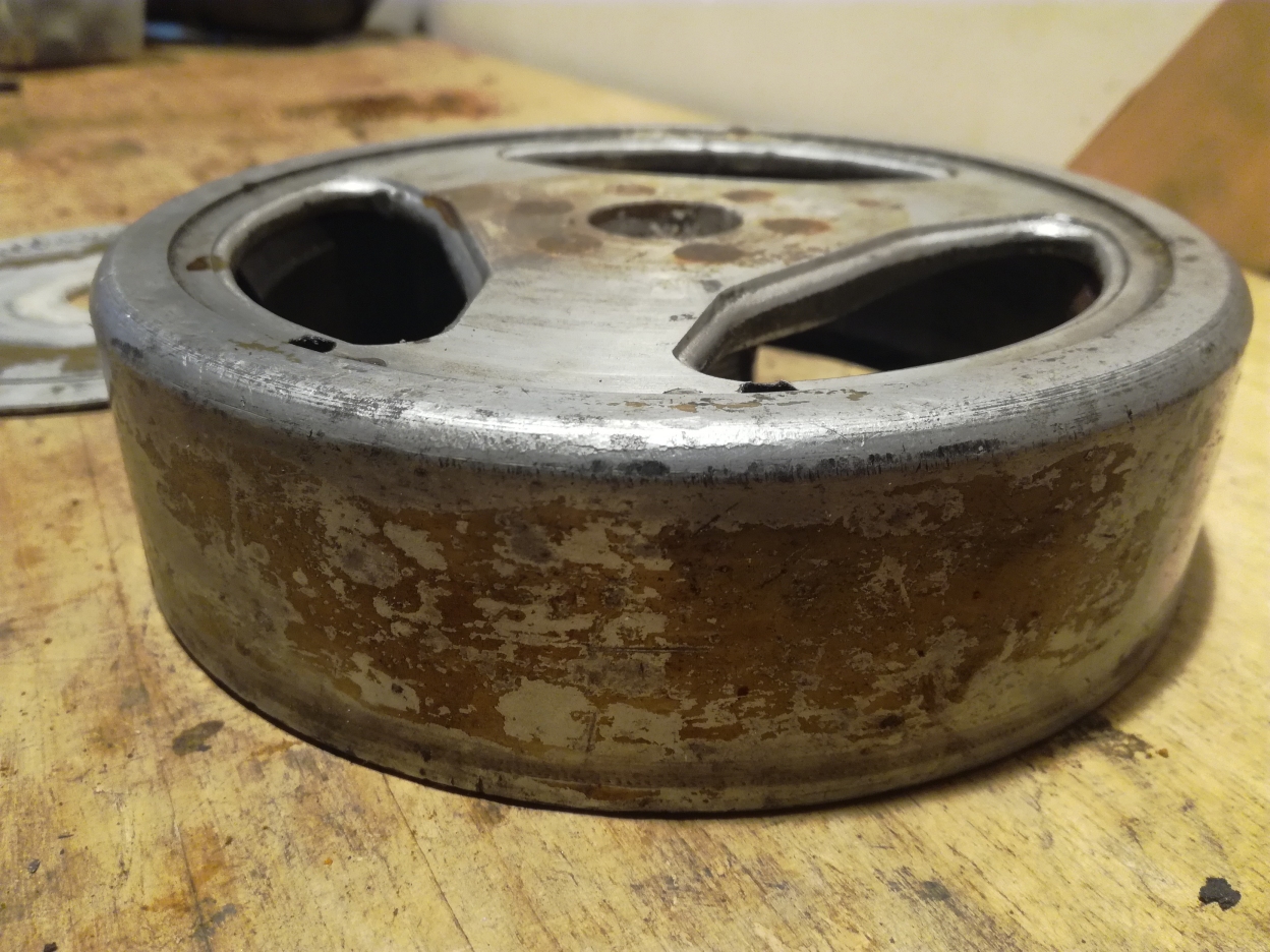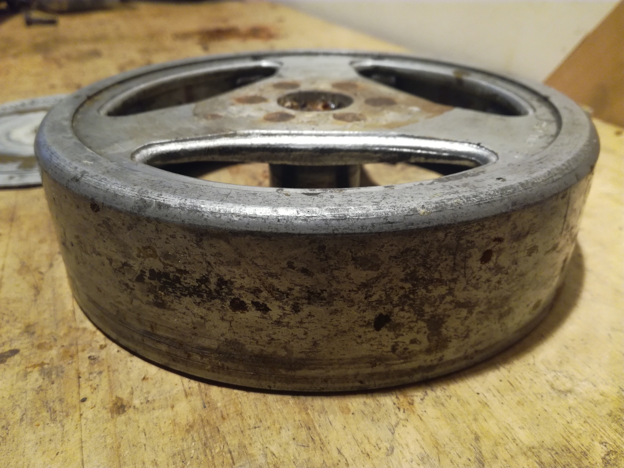 After thinking about it.. In case things are far from straight forward, I'm not going to strip it right down until after the season, as I want to use it on my tender. I am just going to clean it up to look smart for now. I've started with the flywheel.. it popped off easily with a suitable hammer, it's so light I just held the flywheel through the holes in one hand, and knocked the nut with the other :)