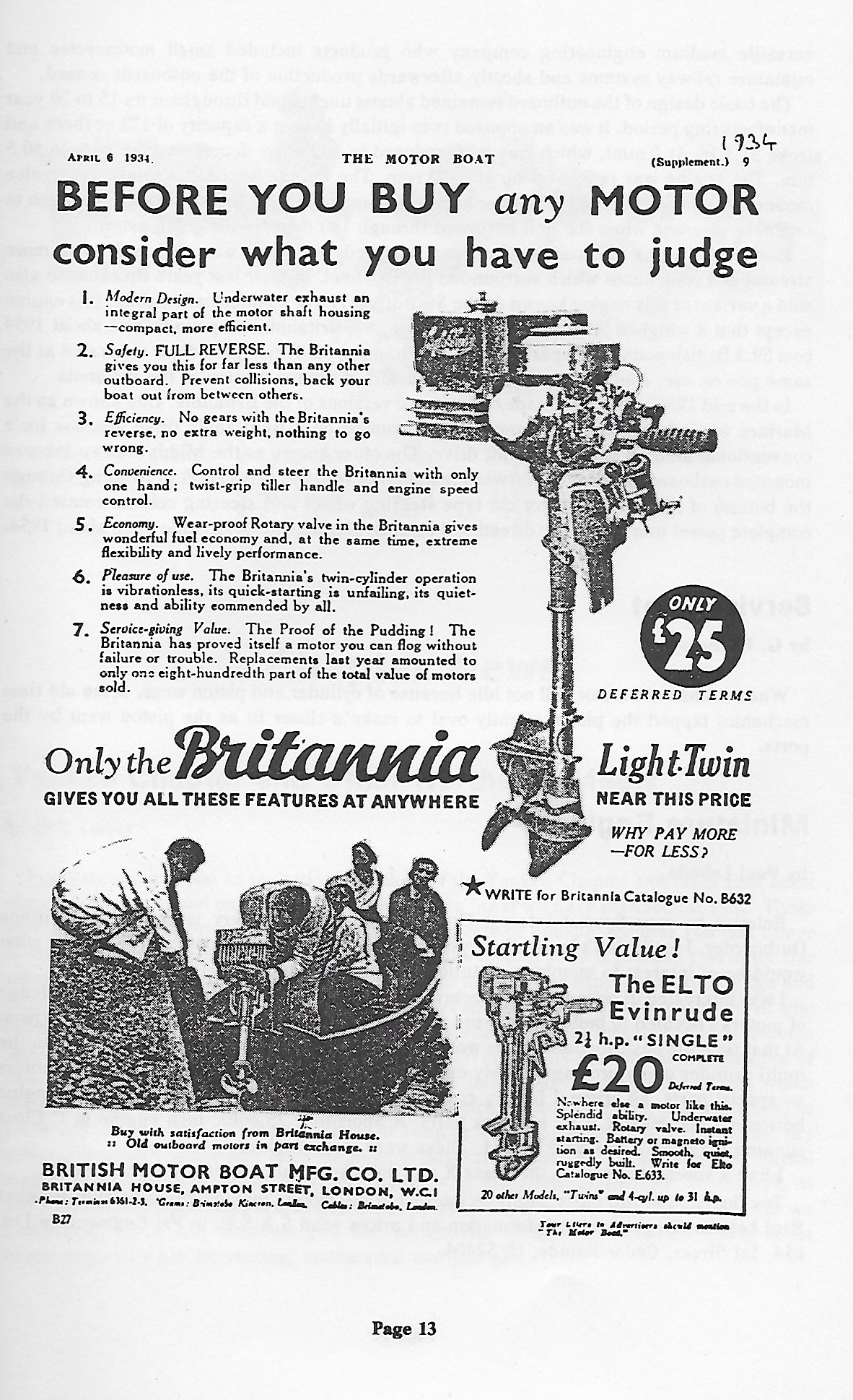 Some further info about the Britannia from the April 1987 Antique Outboader produced by the Antique Outboard Motor Club.