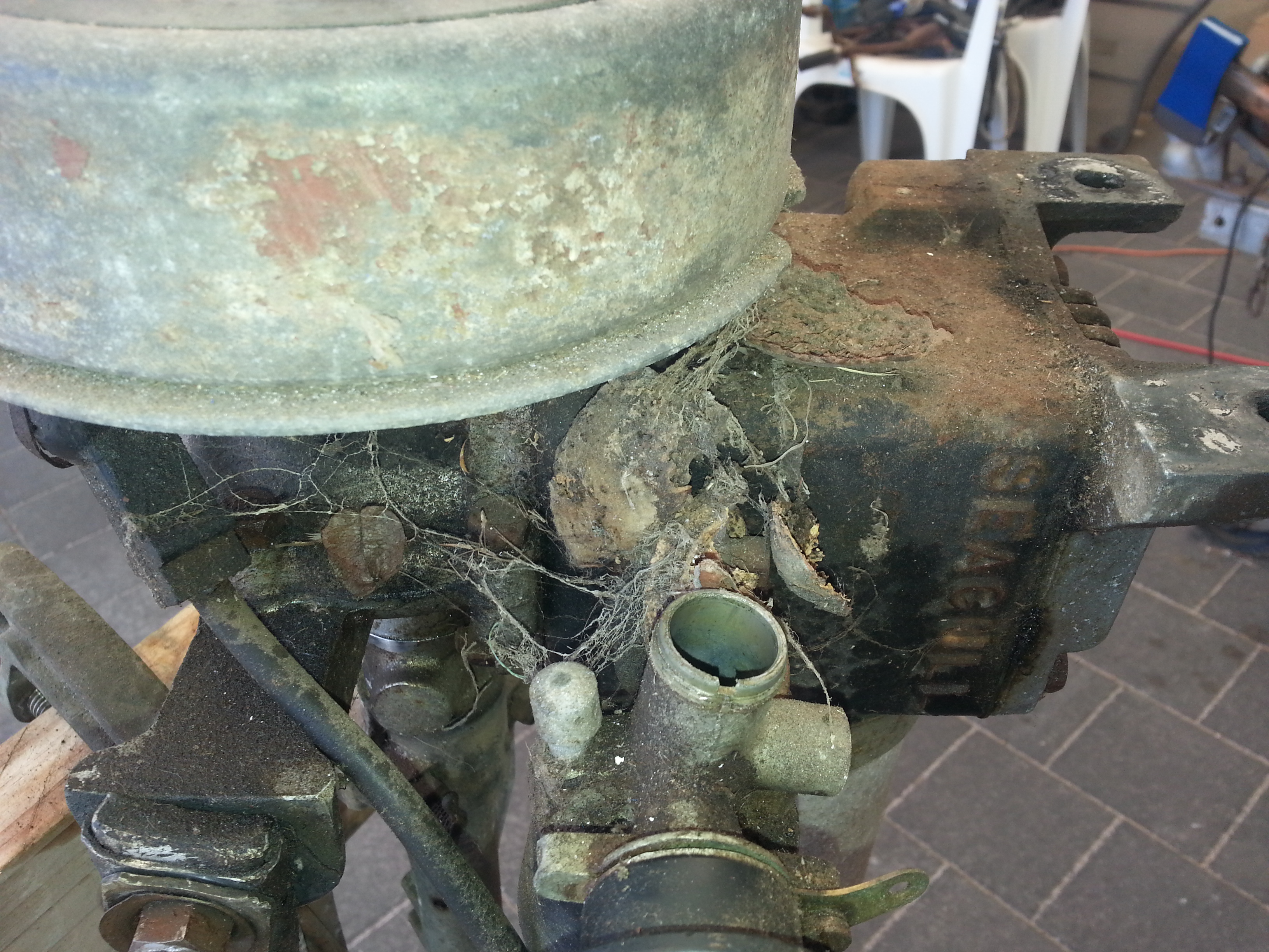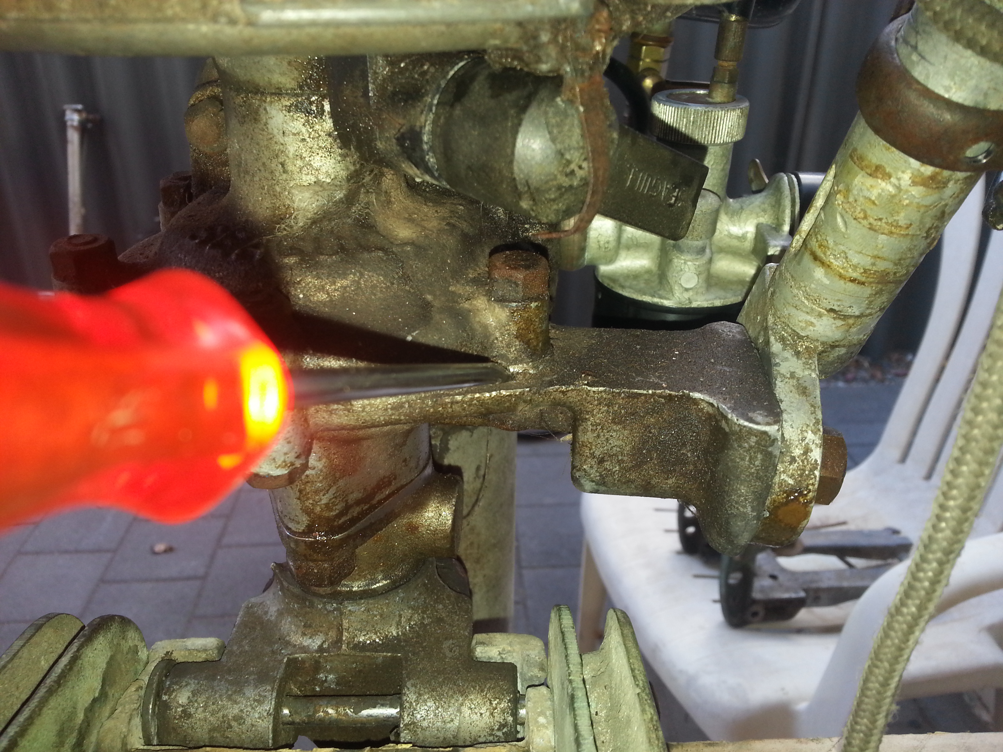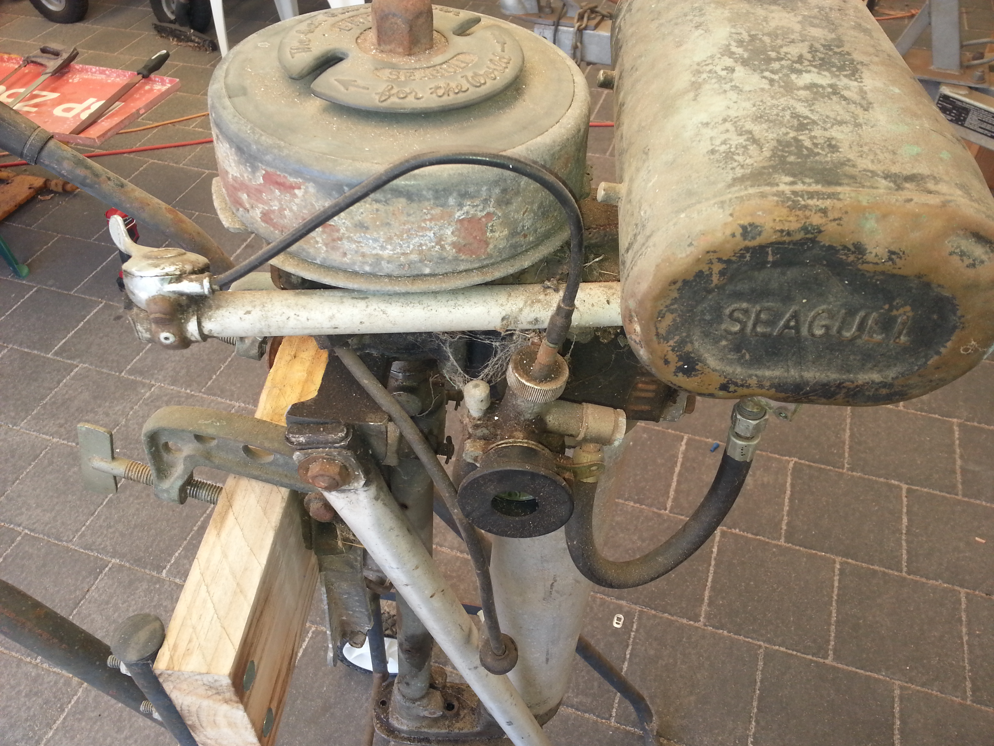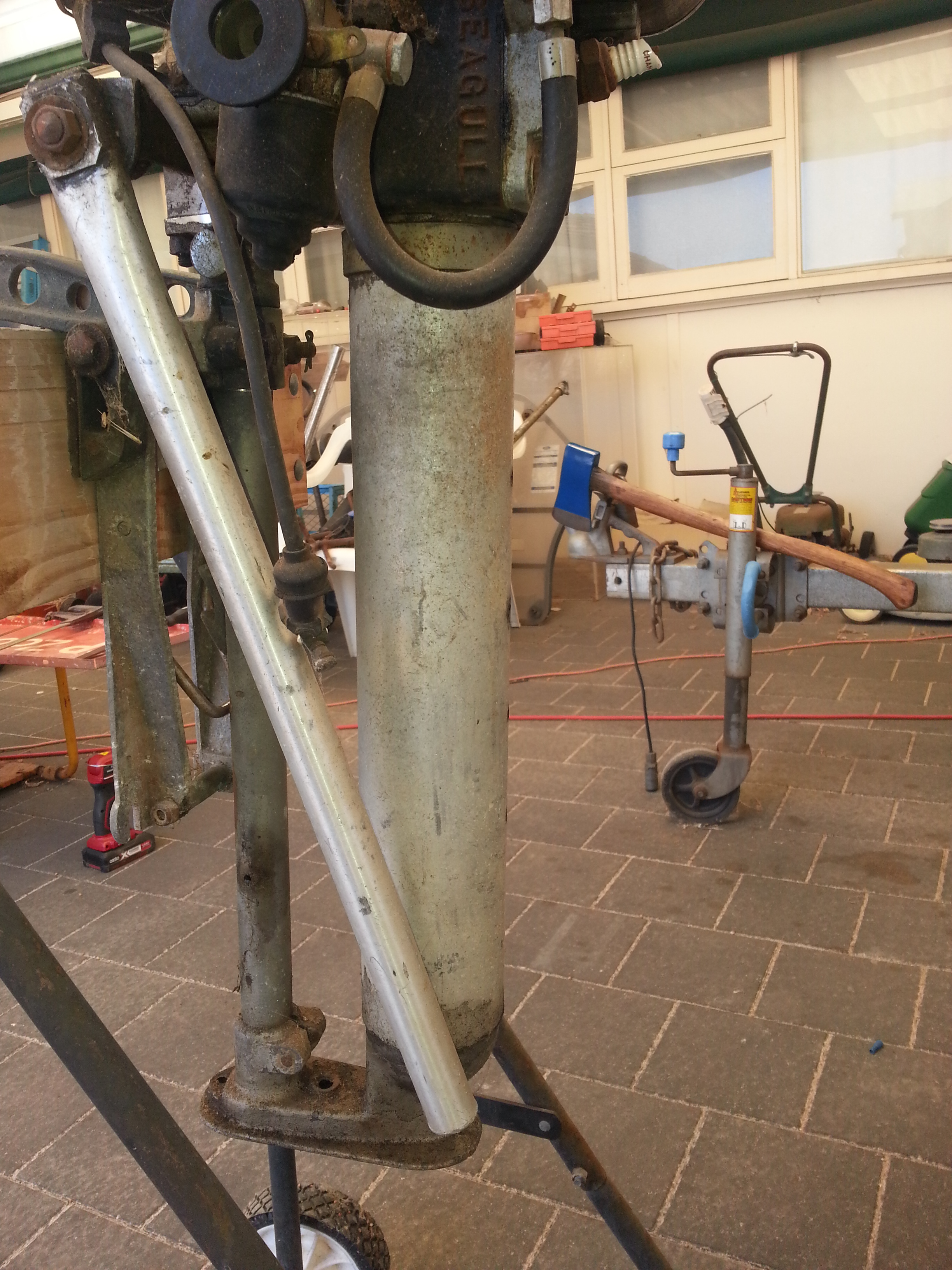 One concern that I have is that seeing obviously that the tiller support and bottom crankcase is bent...it had a fall if you go back...this area may just be nasty and things come apart. Common little thing with a Gull and easily fix