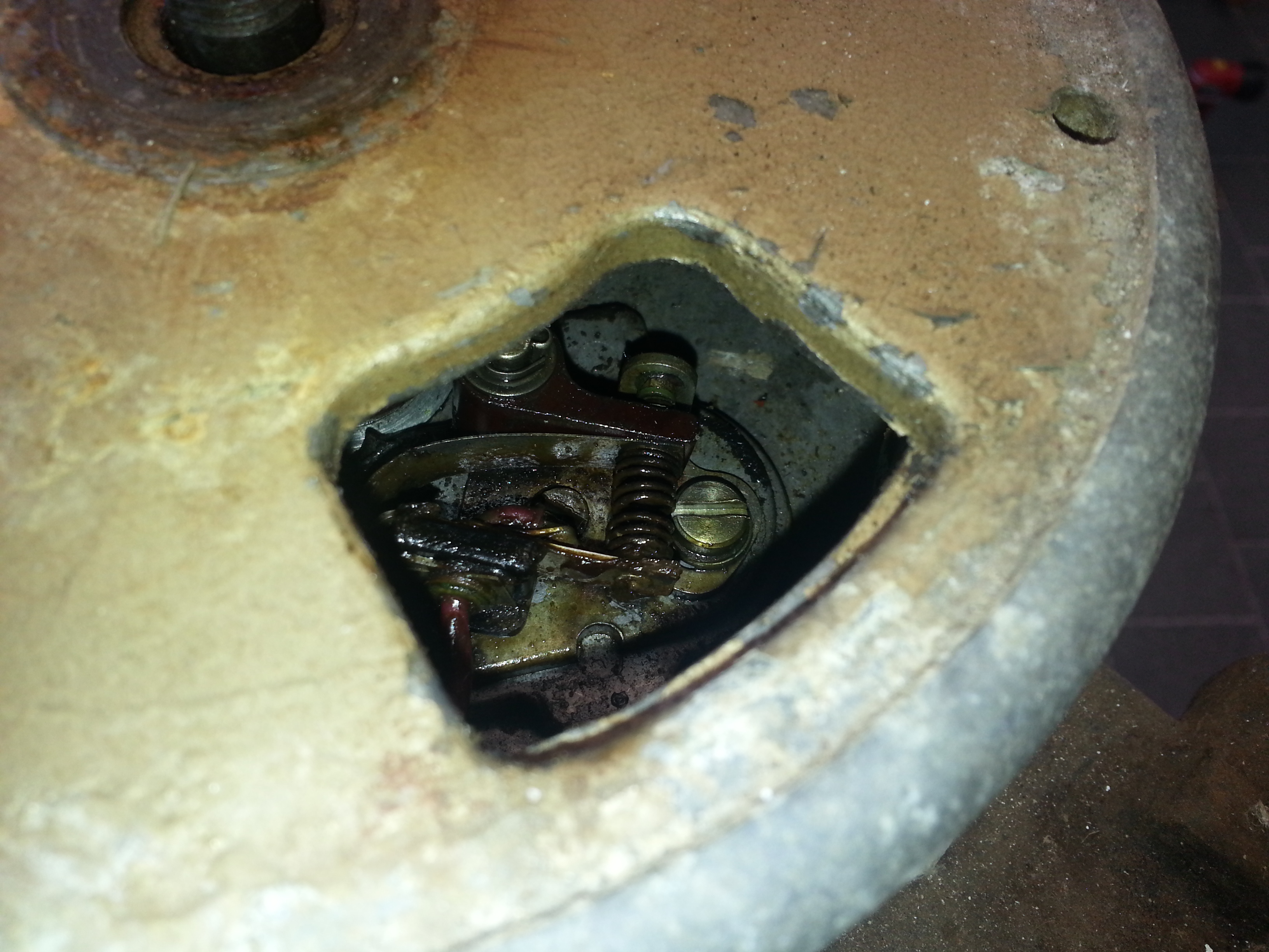 SO MUCH grease on ignition defies any logic. Keyhole surgery through flywheel cos I just not going to take the flywheel off unless a replacement base plate assembly is required. I have a box full so not an issue that.