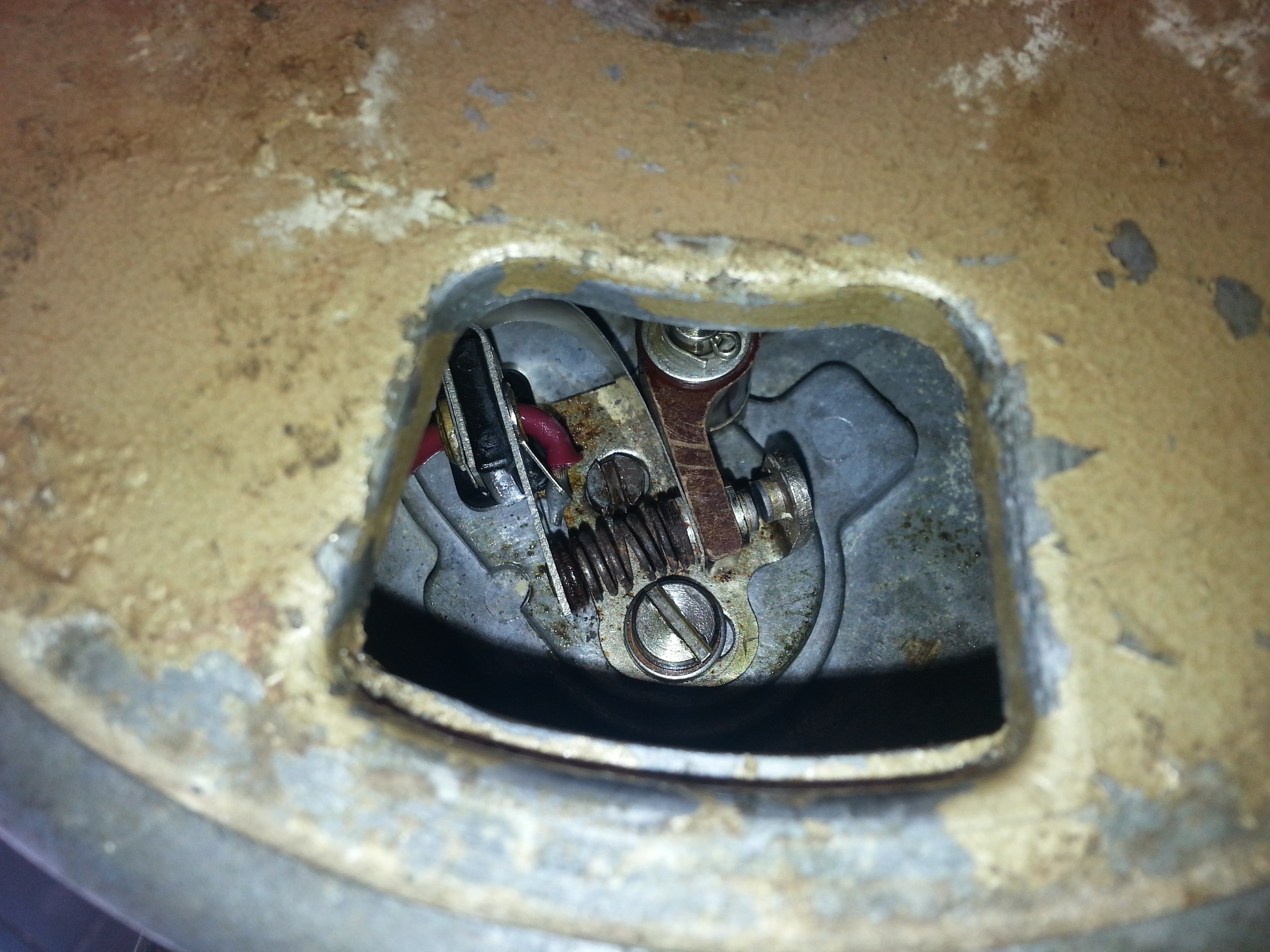 Points set and clean...actually I could have left the gap as is but needed to know if things were actually adjustable.