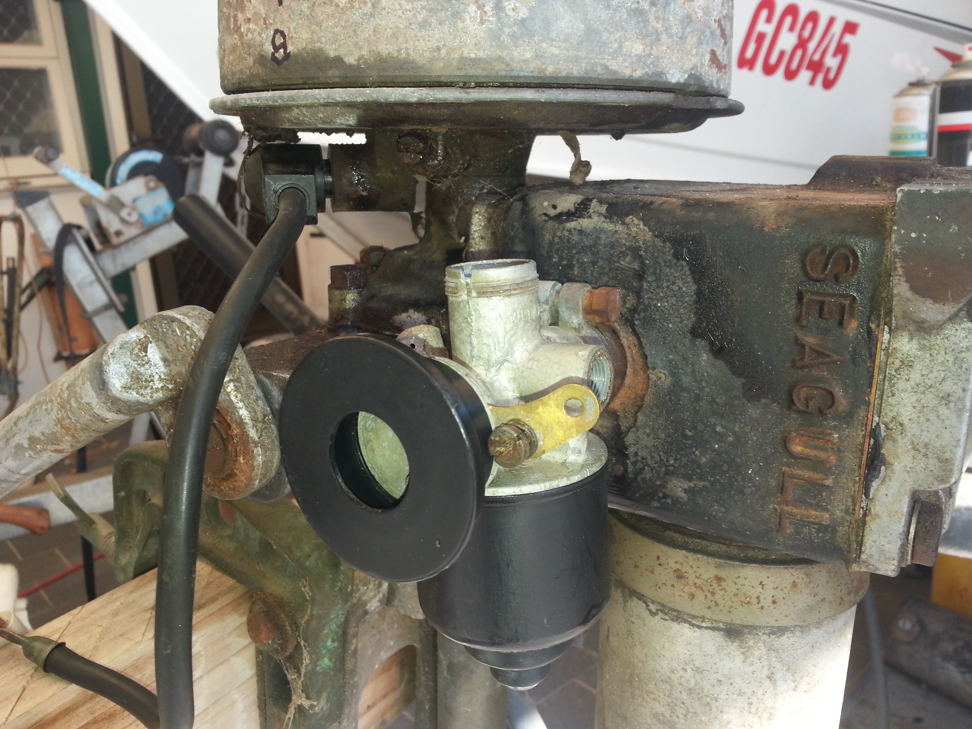 Borrowed from another old dear carb connector...with a filter. Must remember to make a note of that aye.