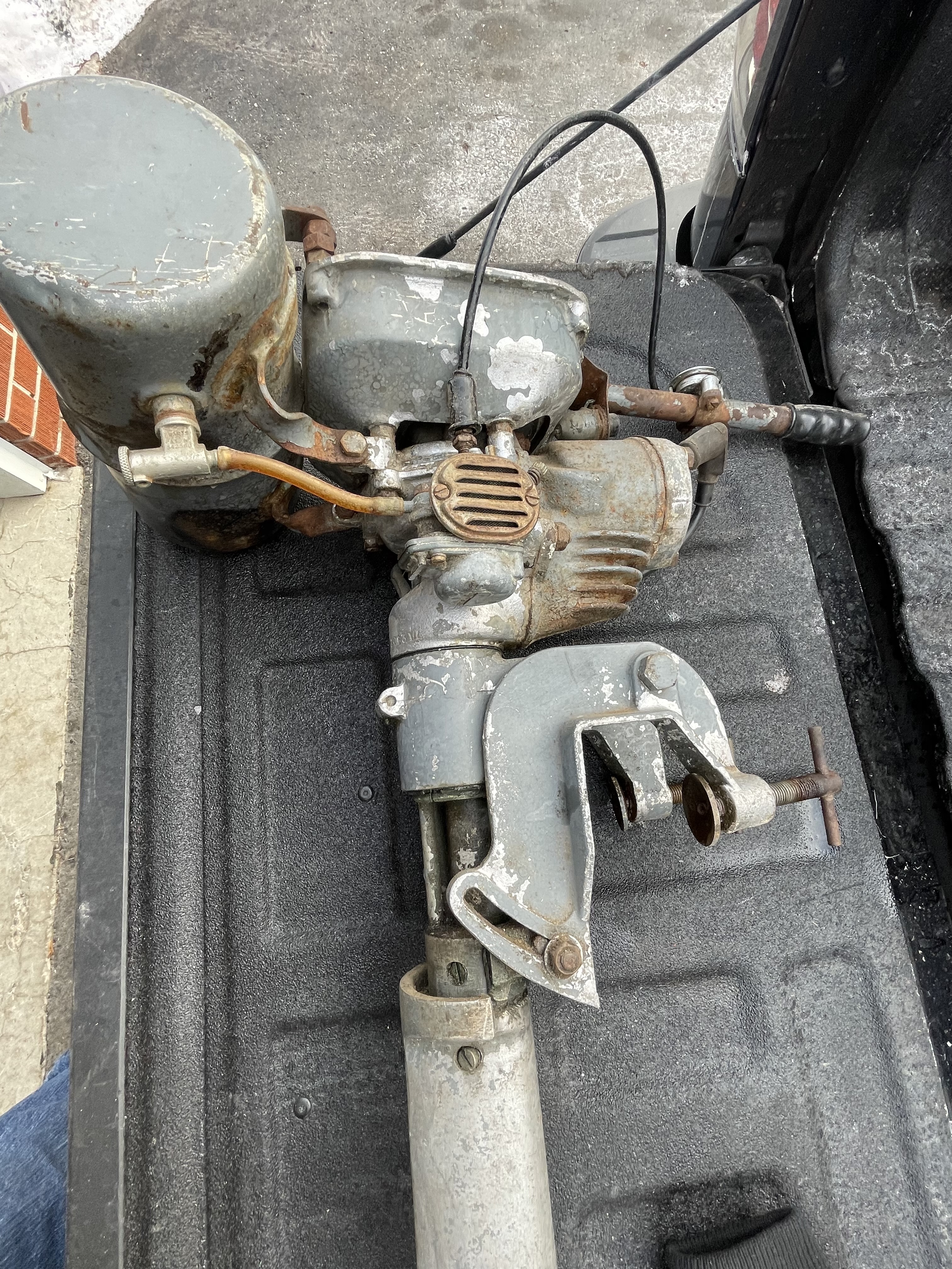 This looks like a British Anzani Pilot 3hp as it has the double transom clamps, but tank, tiller and shroud around the flywheel in not original. Hope this helps.