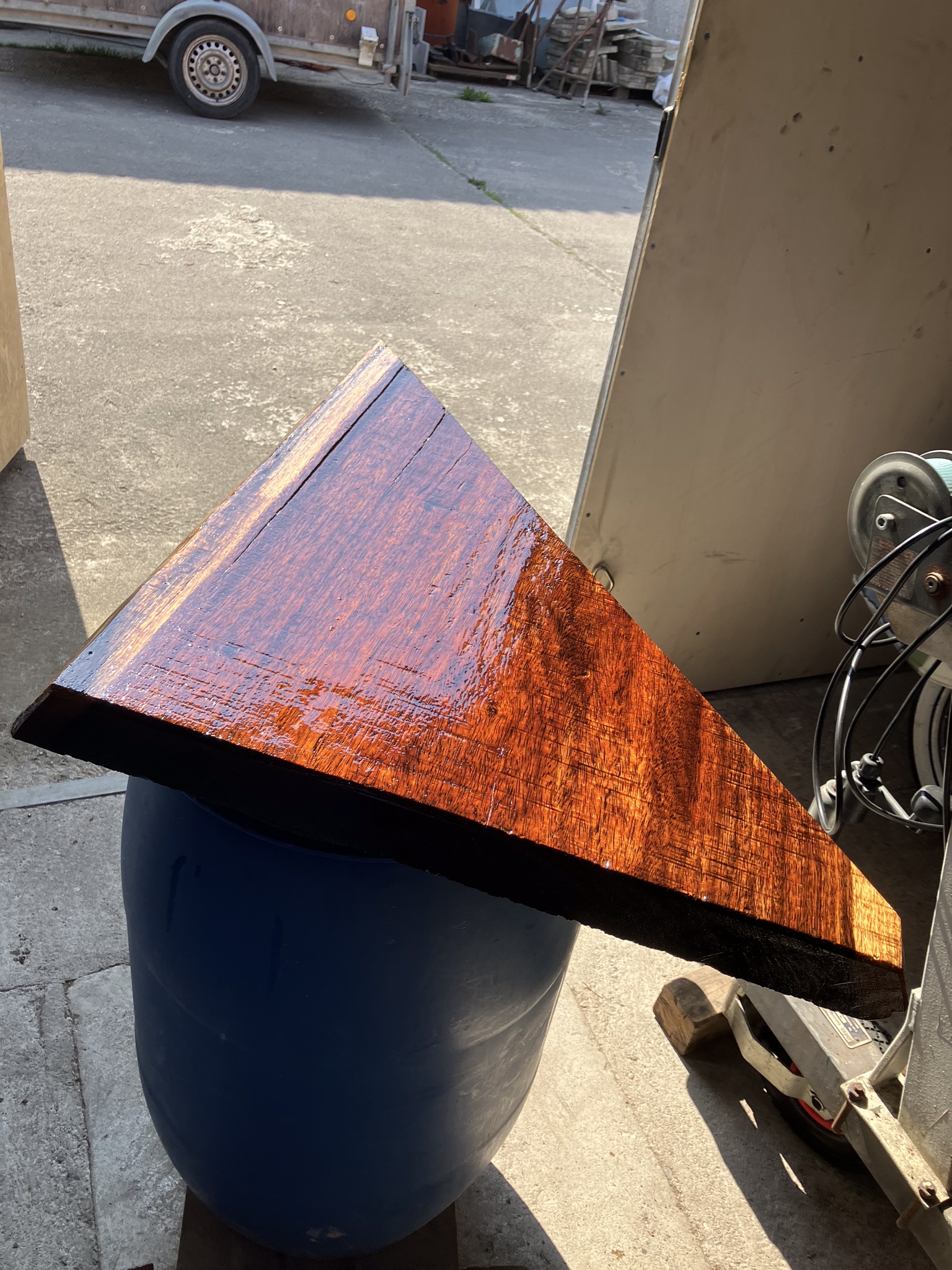 But there will be a mounting made of a thick piece old, tropical wood and some more parts...