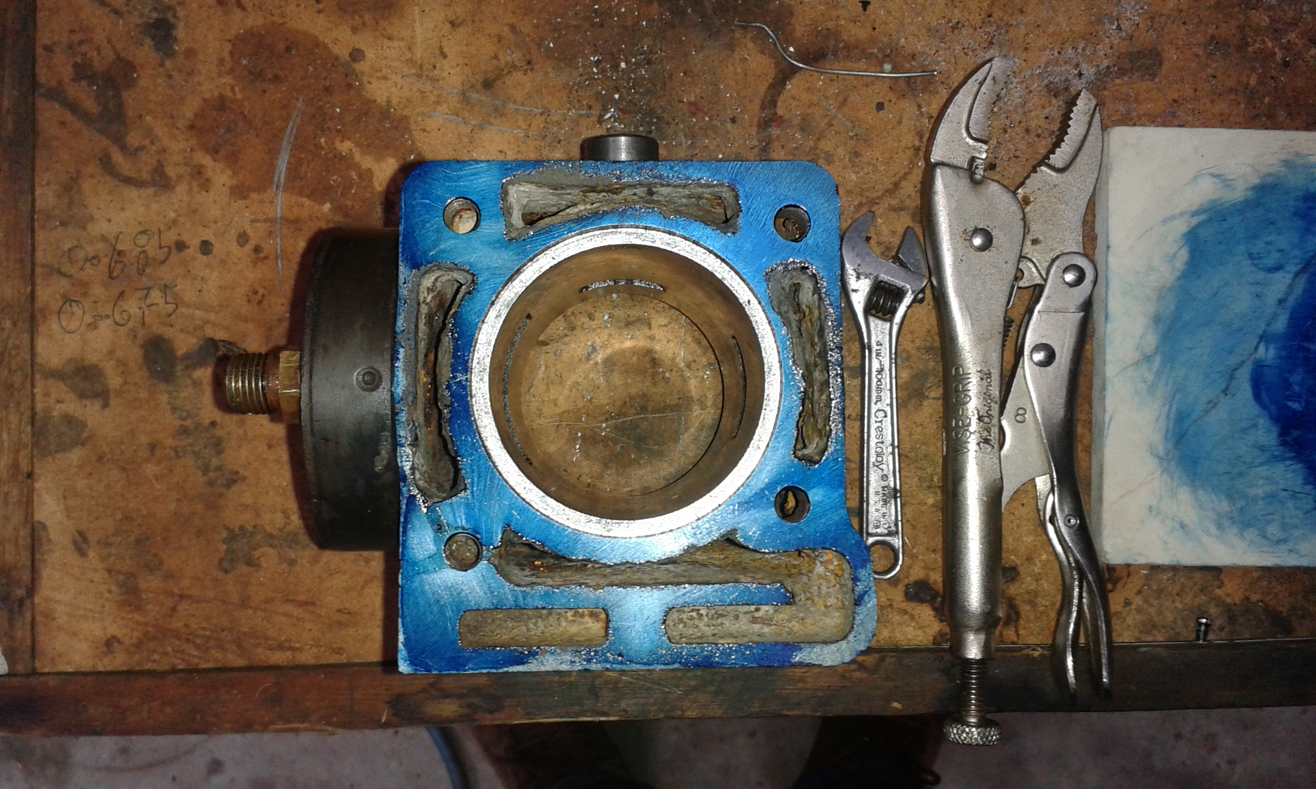 Then using the press tool i made placed on the top of the piston i then used a press to push out the stuck piston. Worked a treat.Almost fell out!