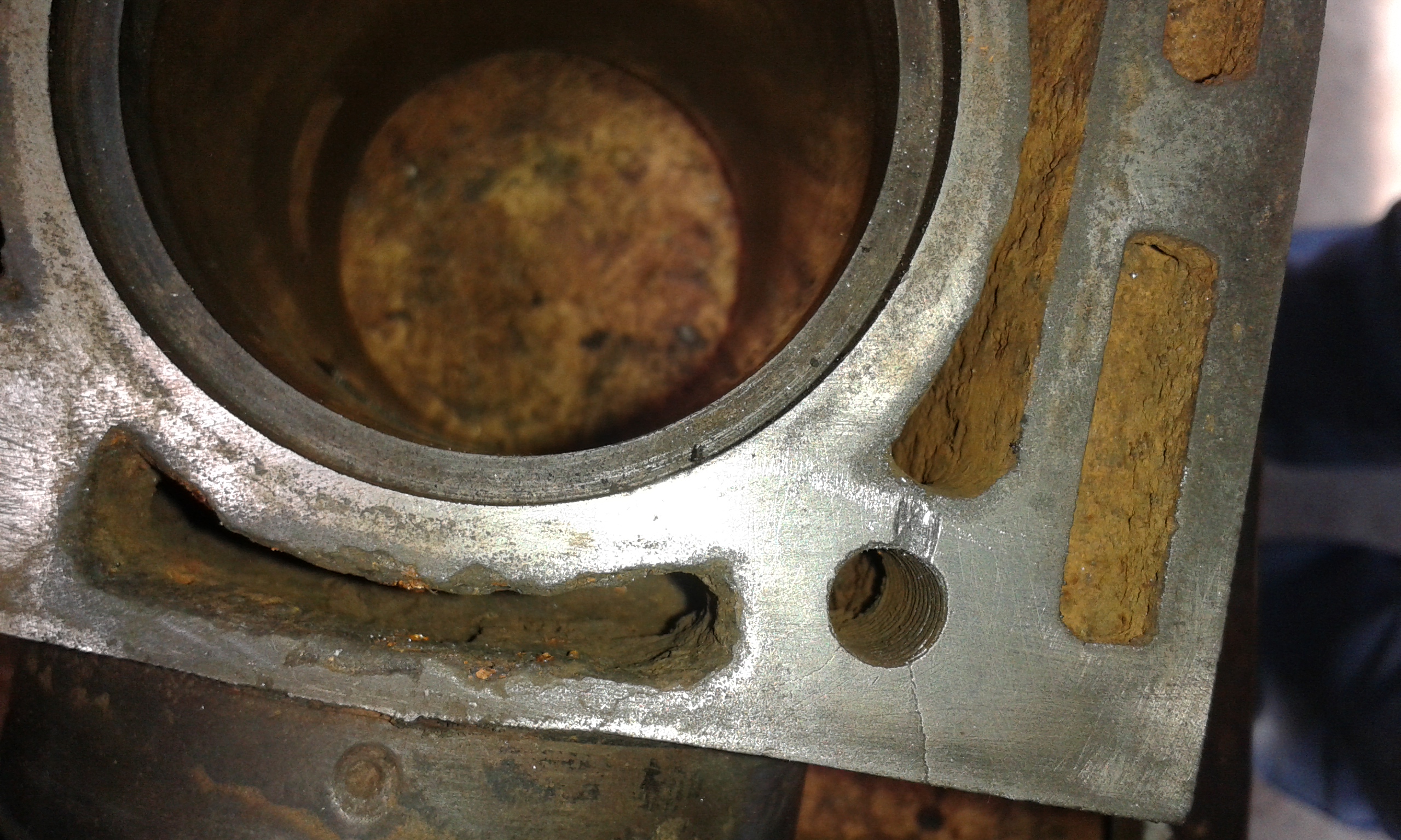 The century head was damaged when a stud was removed, replaced and over tensioned. When after checking out a water leak and head blow it was evident that the head had been seriously damaged.