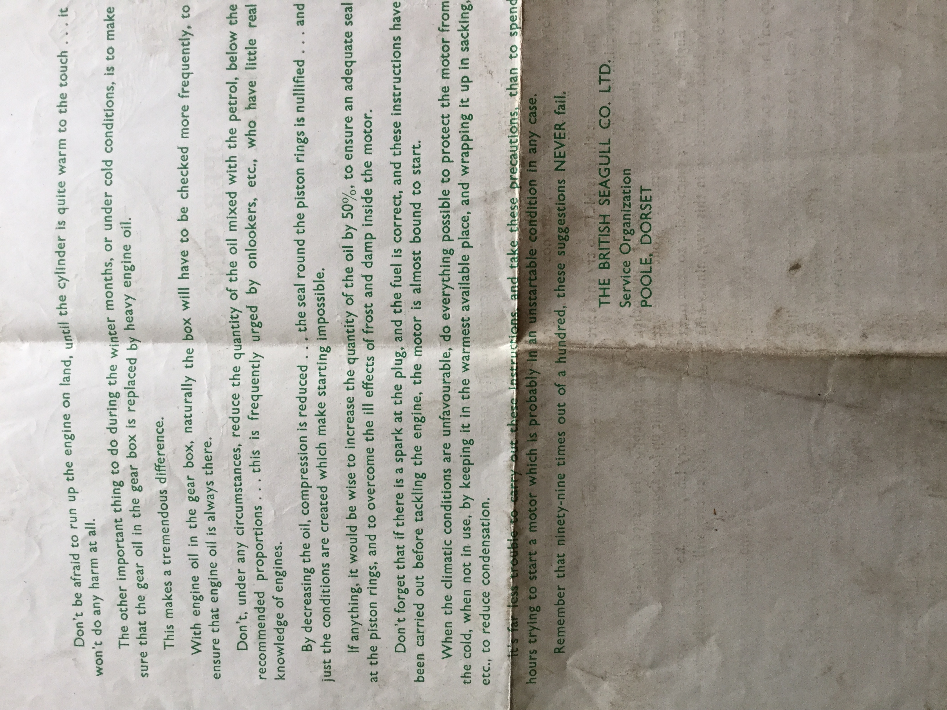 Nice to see that advice from the factory about starting your motor in freezing conditions. Interesting that it applies to all the models from the OJ right through to the LS etc., That's not a document I've seen before.