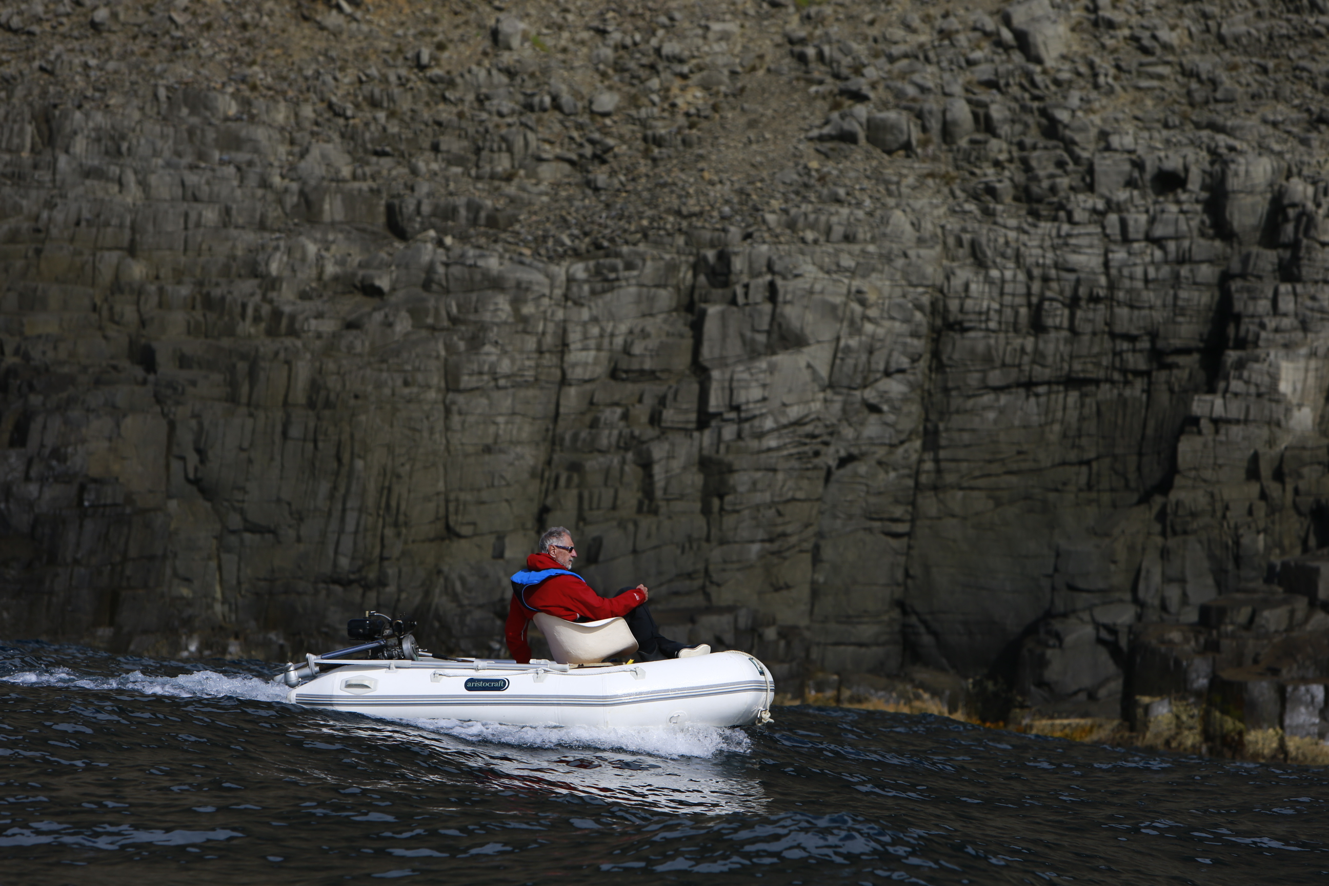 Crossing the bay we ran out of fuel due to the large 26L supply tank having a major fault with an un-pumpable 10L reserve. This meant having to decant fuel in a location not to our choosing in unpleasant choppy seas. This was the only breakdown of the whole trip and lost us further time.