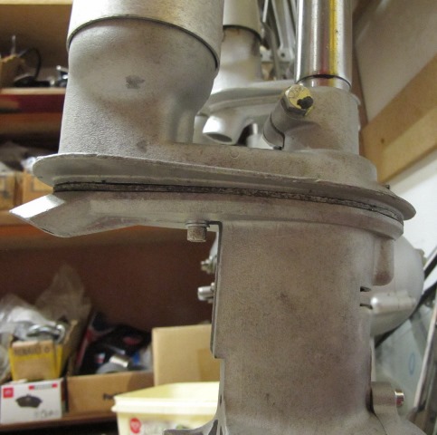 The gearbox that I have with the bent lower case will seal around the water pump area, I can easily seal the gap aft with some silicone sealant.