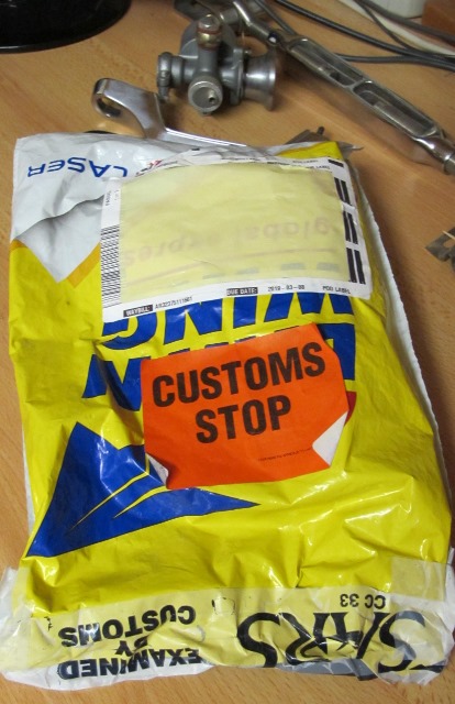 The German company DPD that collected the Amal 2 jet carburetor from Martin on the 3rd of March 2019 had the part in Johannesburg, South Africa since the 7th of March, since then the RSA Customs have been blocking it as they were not happy with the ten pounds declared value on an Antique Carburetor.