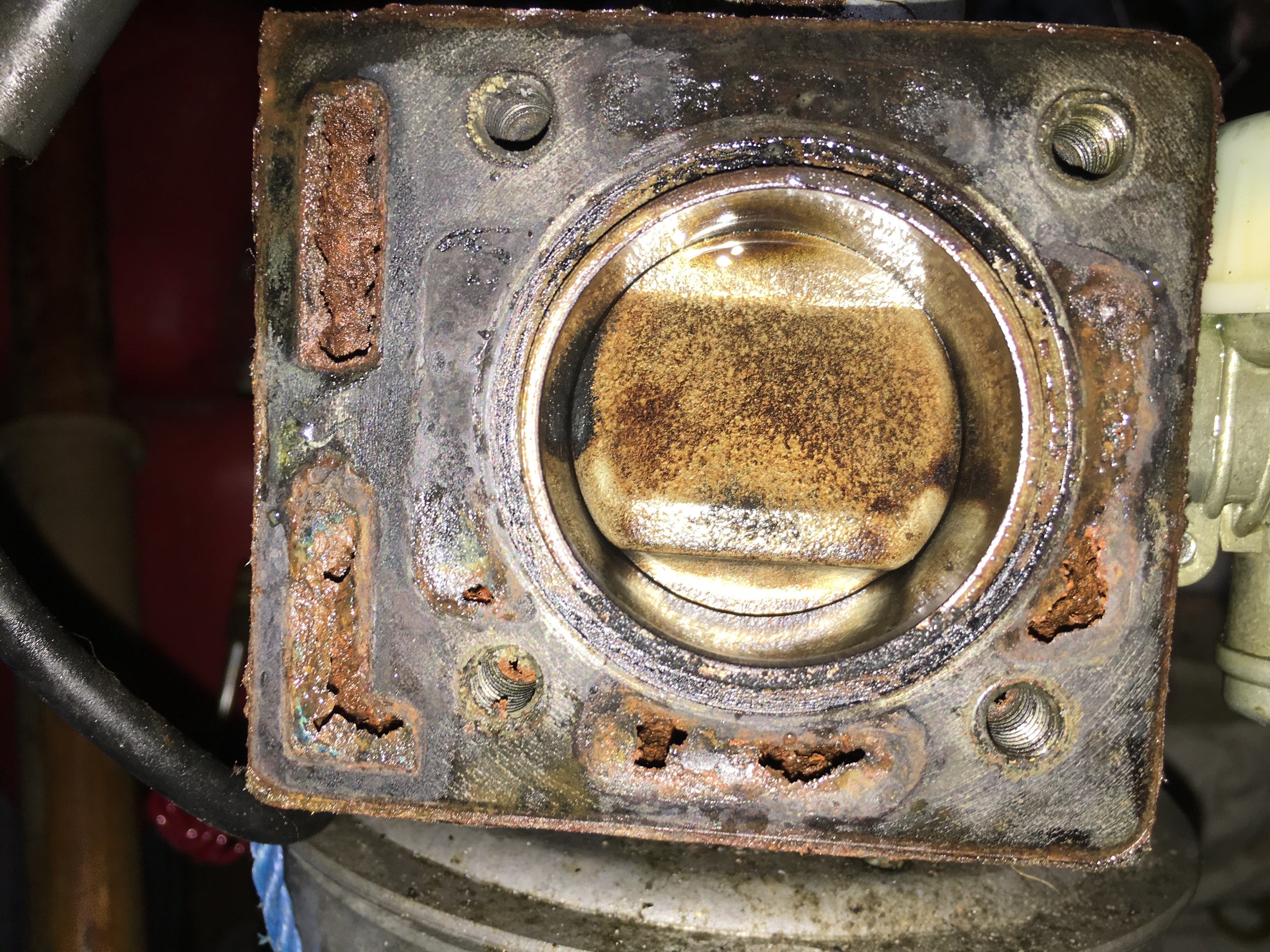 I got round to removing the head this lunchtime having sprayed everything in penetrating oil for a couple of evenings. Came apart easy with no heat required.