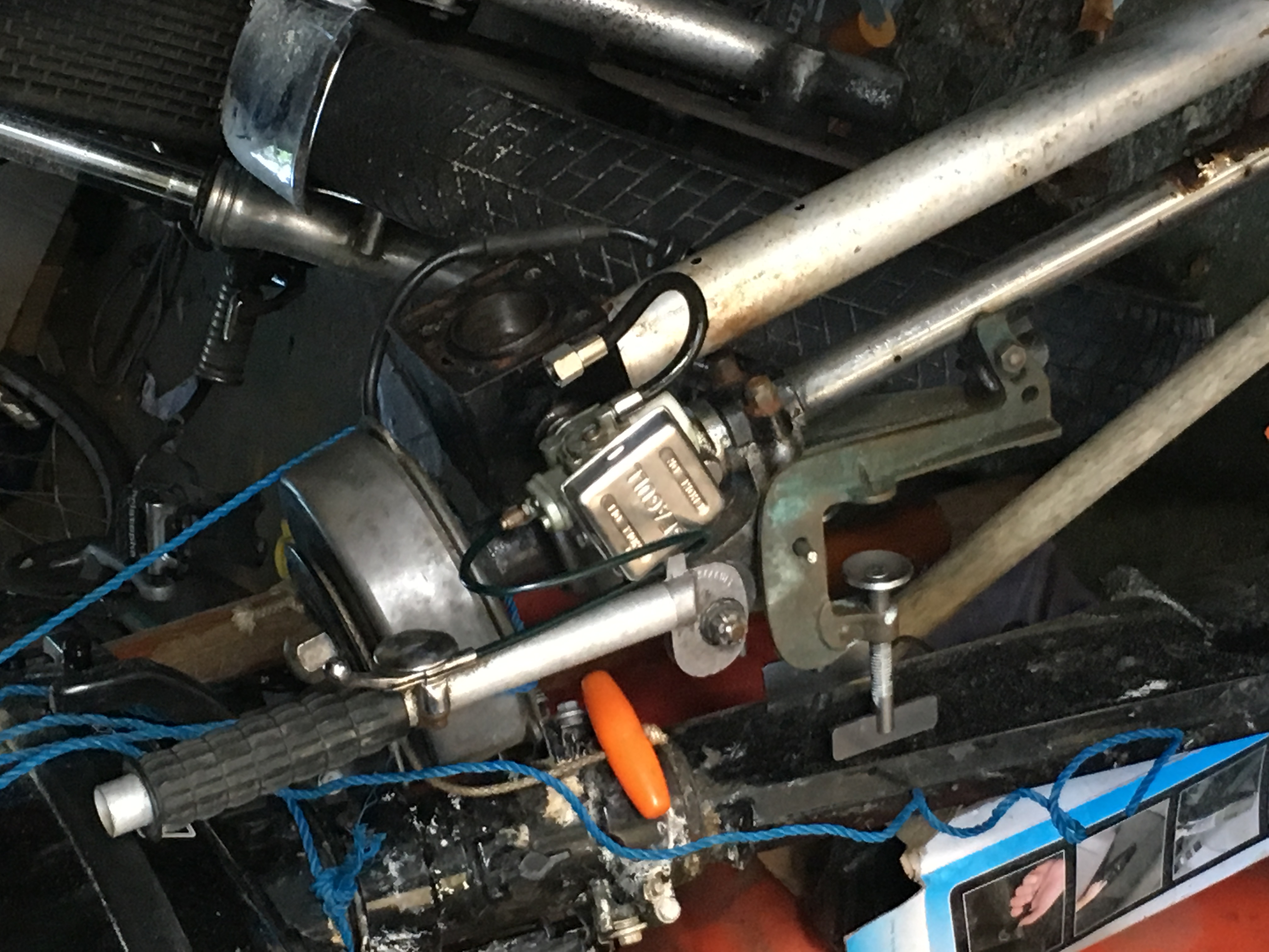 The motor starts in a bin but never really gets going and stops after 15 seconds or so. I've replaced the plug, cleaned and gapped the points and stripped, cleaned and rebuilt the Bing carb. Had a few backfires, did the points again but more carefully and once flooded using the tickler it will start but struggles and then stops so I was thinking fuel starvation (cos it starts again when I get it more fuel by tickling again) or back pressure so I emptied a load of water from the bin to restore proper immersion levels with no effect and then I wondered about stale fuel. At this point i knocked it over (curses) broke the clamp screws which I've now replaced. Cost of parts to date now equals the very reasonable £35 I paid as a non-runner.