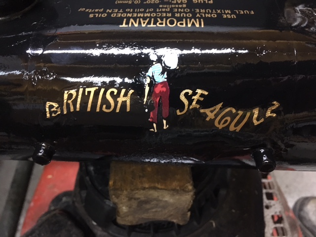 The ones we use now are water slide decals screen printed on one sheet and the original ones were screen printed as individual words on one sheet, that's why you can see the edge of the decals around each word, as they were laid down on the tank as one sheet and the backing paper removed using a solvent, as decals can be made up of layers of paint and lacquer to make them look glossy.