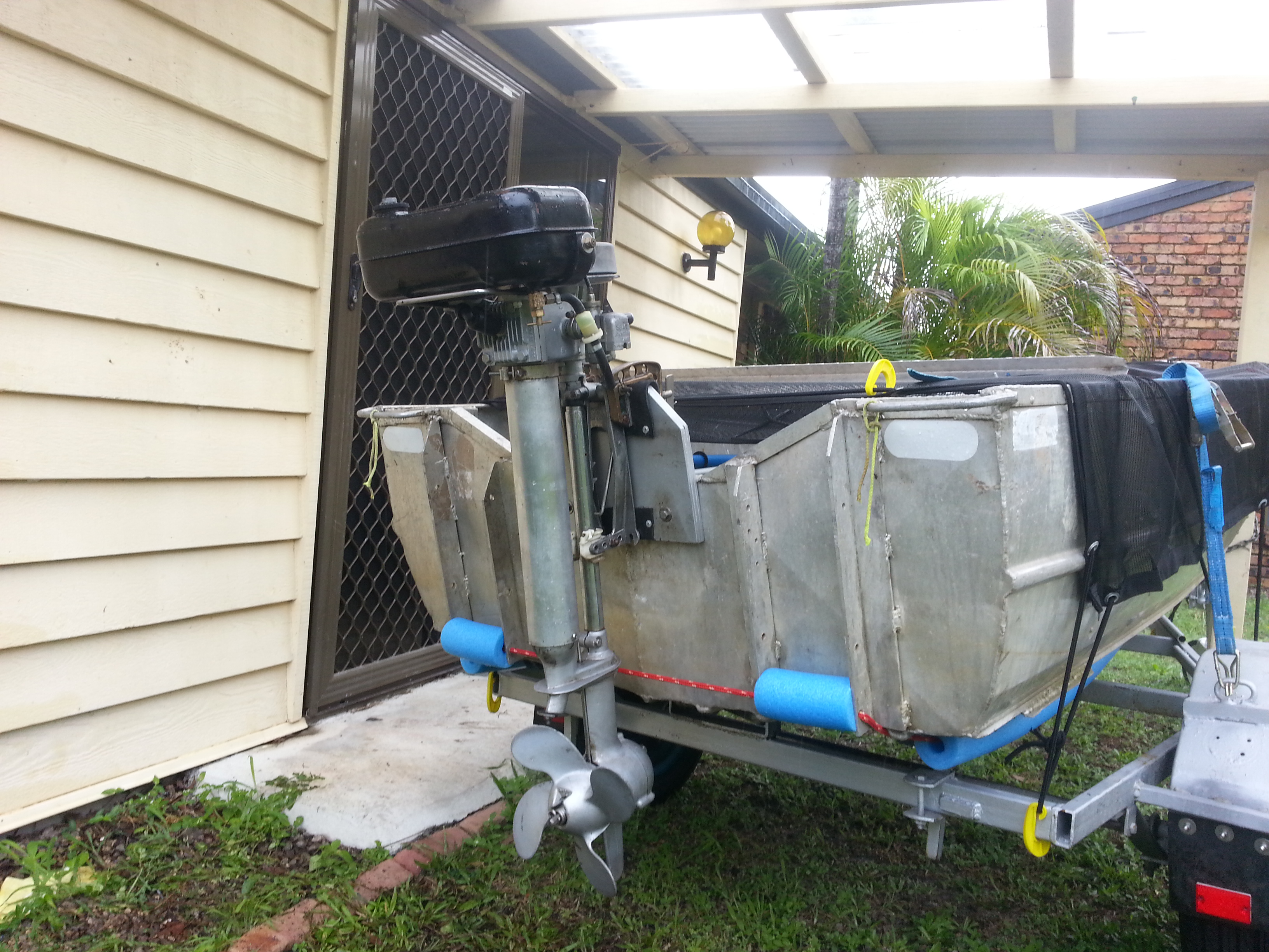 So I fixed up the boat , got the trailer going and looked for an outboard. .