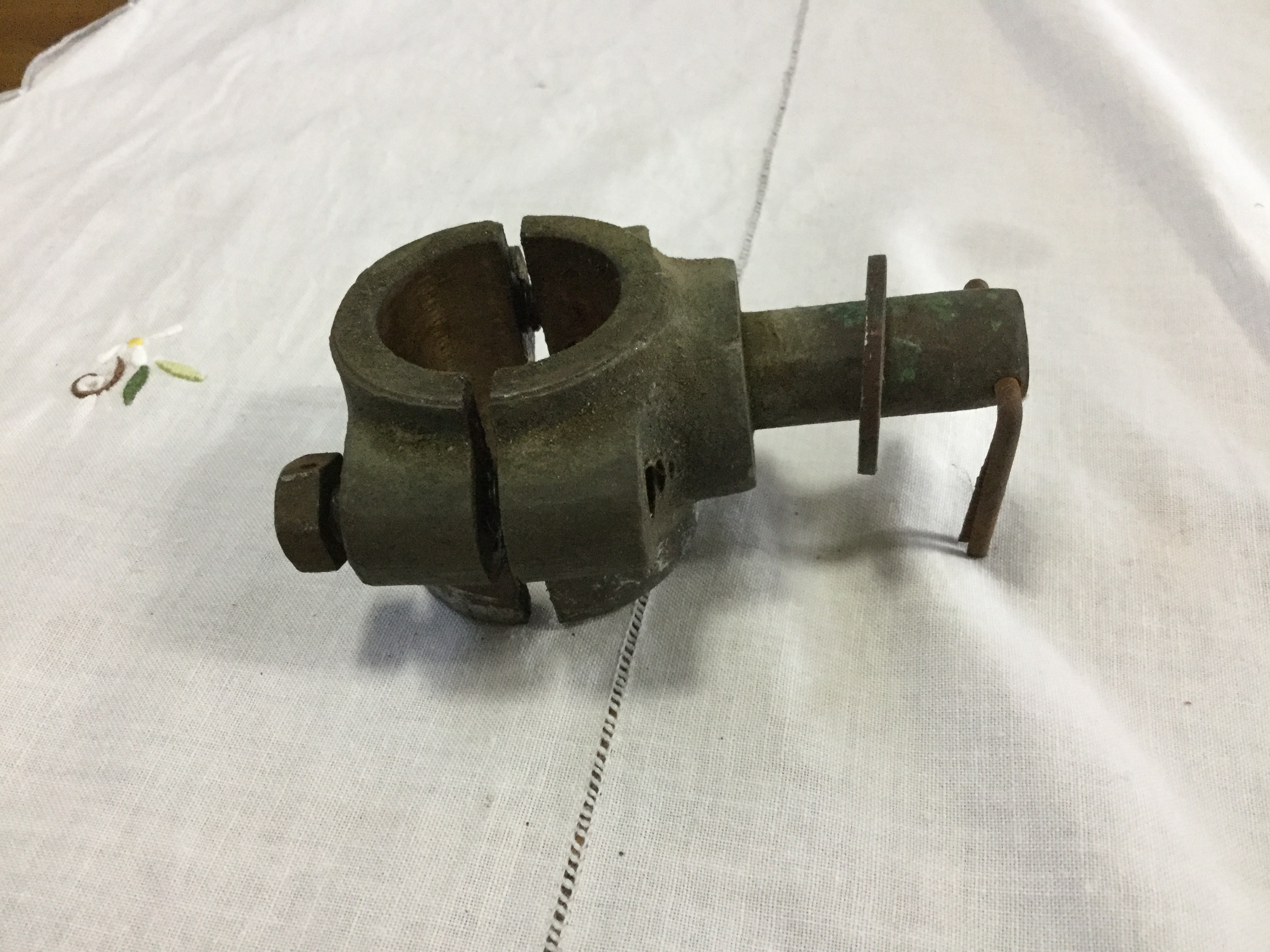 Also, this part was bolted to the driveshaft tube. It’s solid brass, and looks to be an original piece.