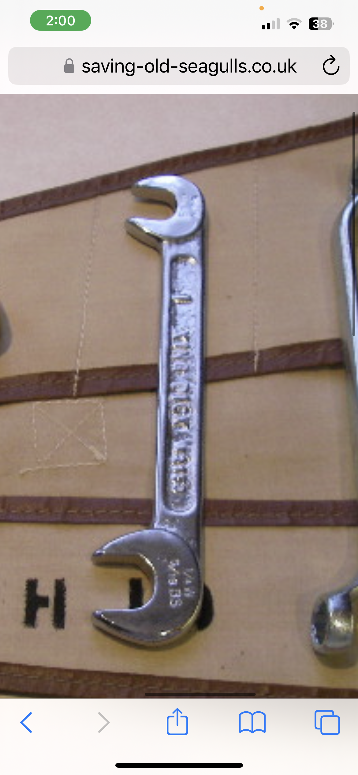 you need a "1/4" BSF x 5/16 BSF OFFSET spanner", that's what Seagull used during assembly!