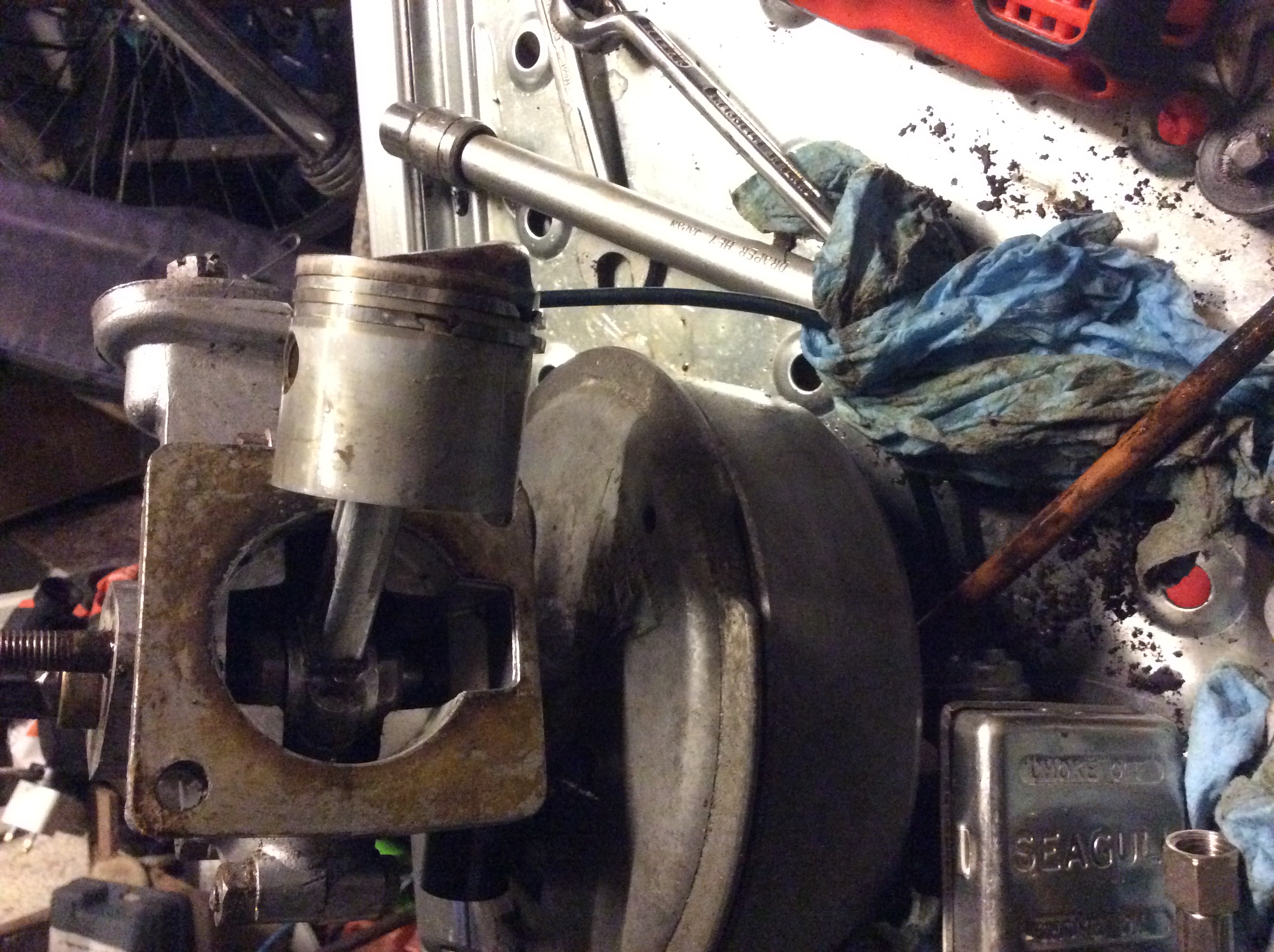 That offset spanner works a treat. So far reassembly has gone well the hardest part being getting the exhaust lined up to allow the little screw into the block casting back in.