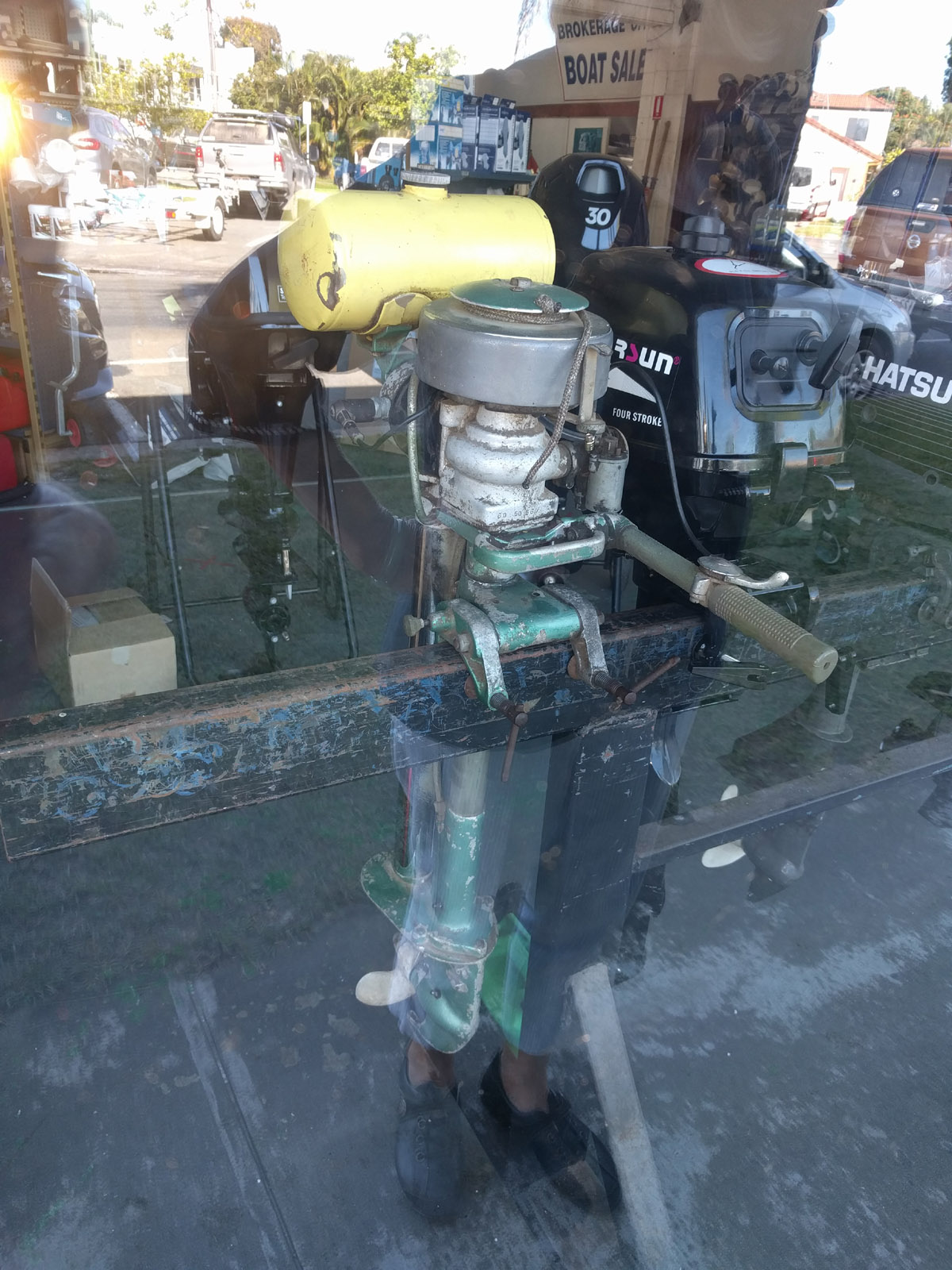 I had a closer look at the motor the other day when the shop was open. It is a Riptide Boatman. The bloke in the shop said that the outboard was in for repair. Here is photo of the serial number for future reference.