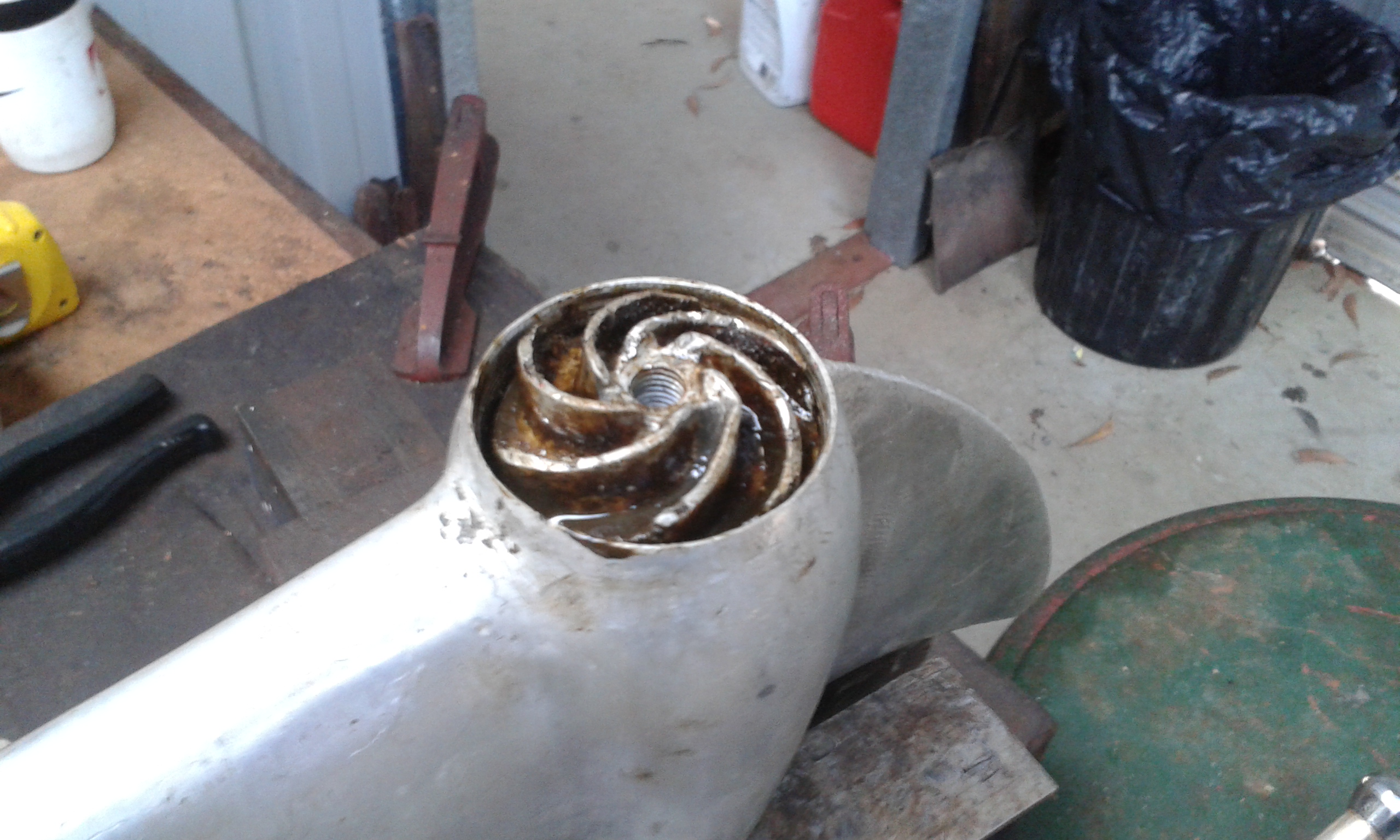 On a serious note only do the minimum you need to do to get it right, the alloy threads are soft and very fine and probably corroded, the impeller has to come off (RH thread) and you'll see where your at, I think Charles has got it though and if that's it you are laughing as long as the end cap goes back on, very easy to cross thread and ruin. I've done four and two are perfect and the other two, the end caps just spin which is strange as they were ok before and tight but once off became loose....that's a 50% failure rate before some serious machining.