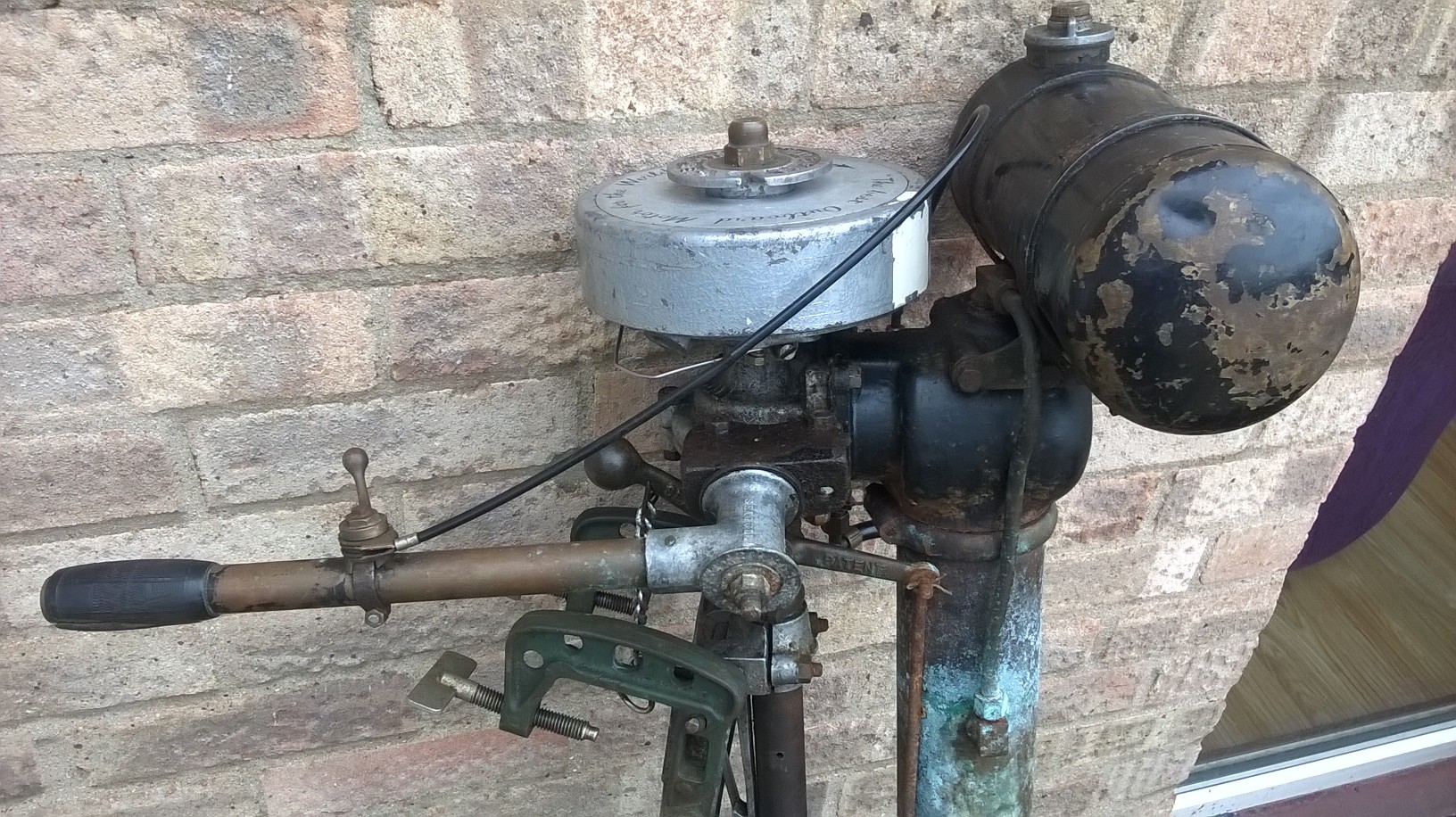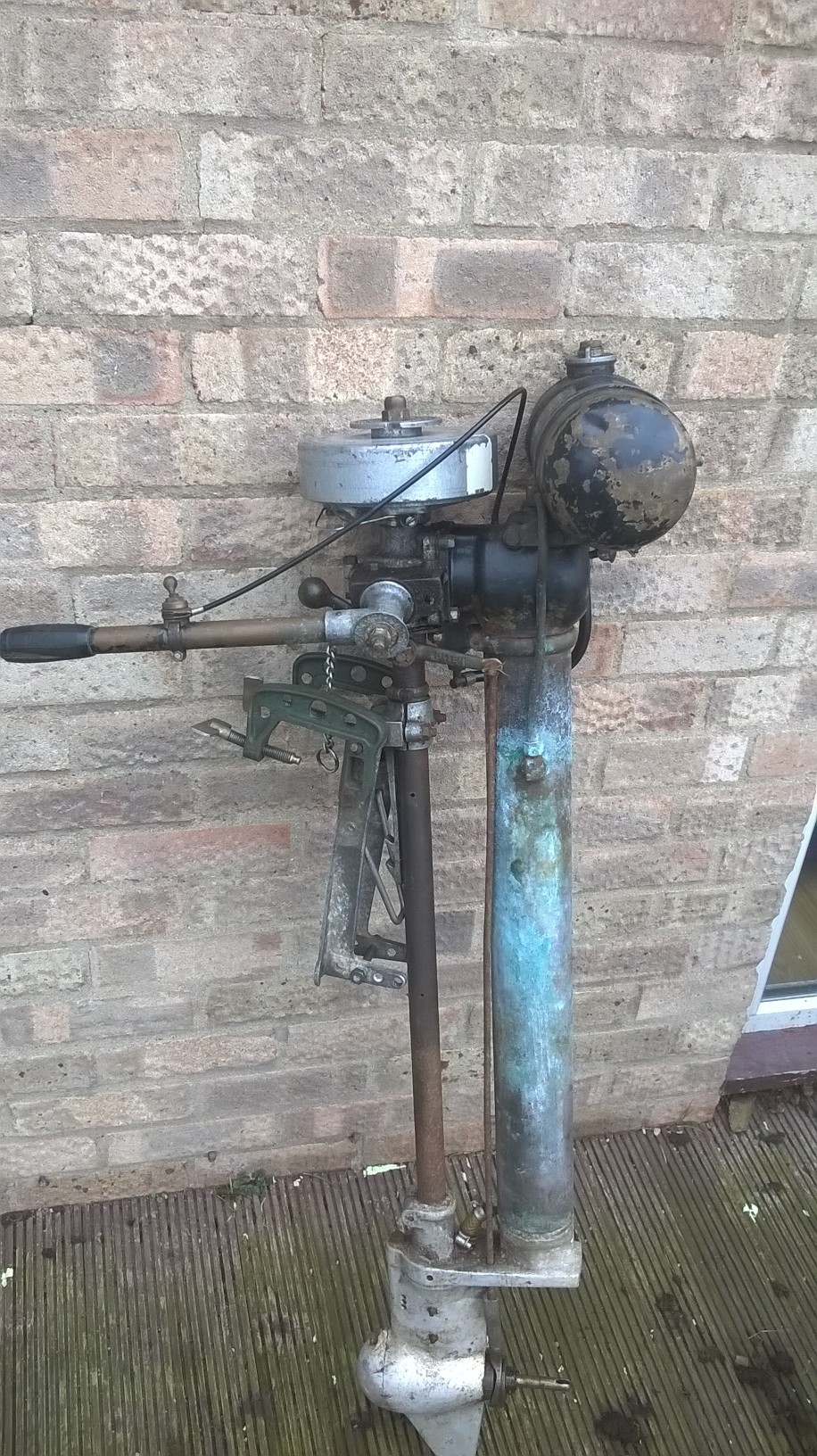 Tiller mount has broken off the crank, so the crank is going to need to be replaced for another of similar ilk, tank, tank mounts and ignition system are all later parts, shame about damage.