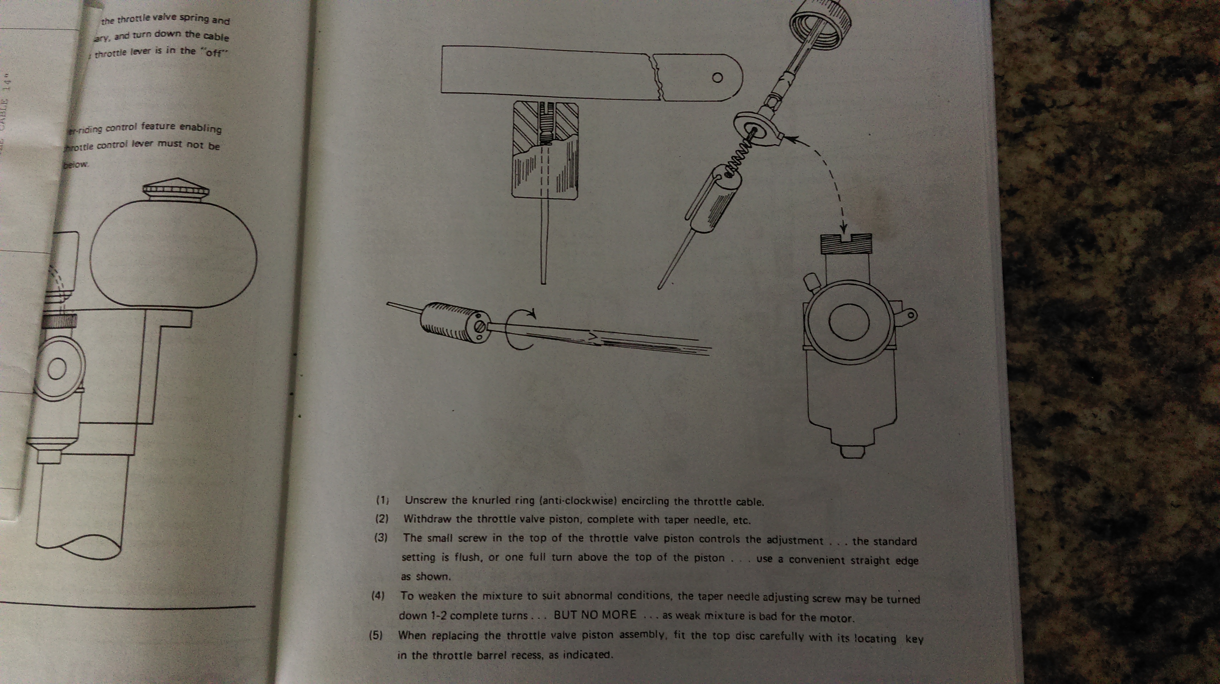I am staring in the diagram and can't see where the taper needle spring should be going - not where it now - that' for sure. There is already one spring pushing the slide down - that's #6 Throttle Valve Piston Spring that goes over the cable.