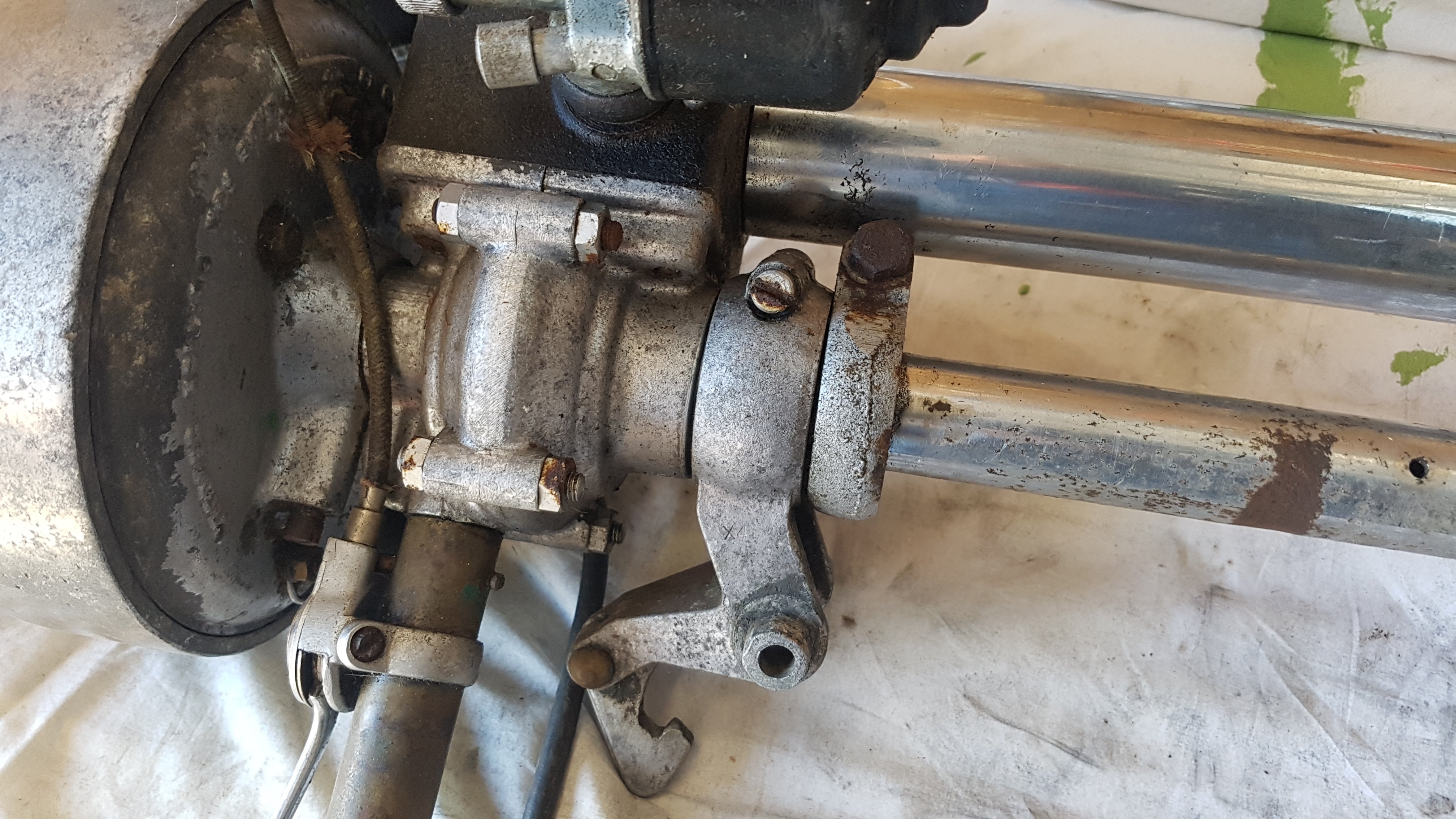 Some general pictures as the stripping down gets underway. No surprises so far. Gear box has turned out to be in good condition so the no turning issue is in the powerhead unfortunately. Flywheel came off without fuss but the ignition base plate needs careful persuasion. The carby plastic parts are rigid, like Bakelite. Does this look like a case of a much later Villiers Carb or was there and early type like this one?