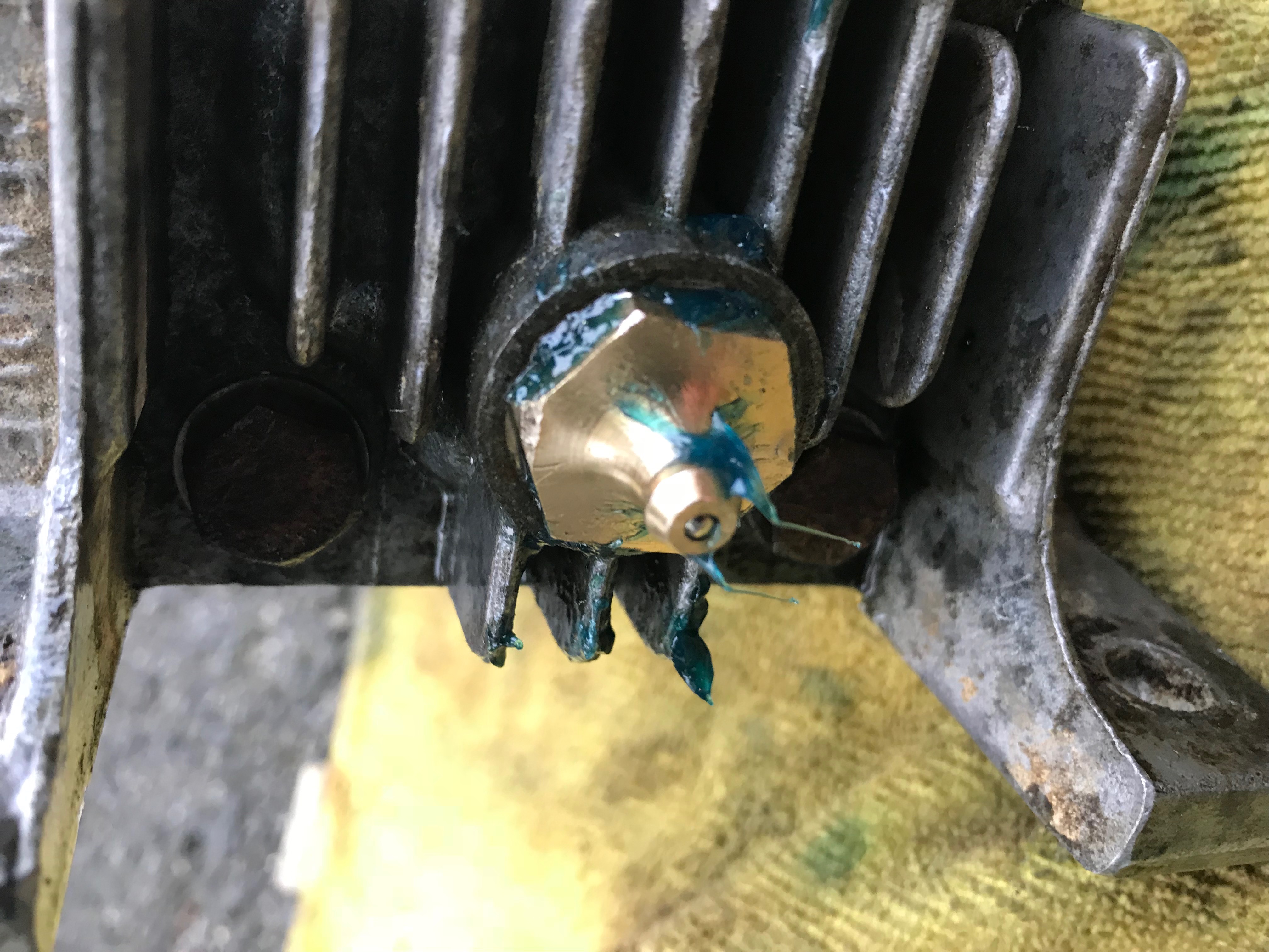 Here's a shot of one in action. I had previously given up on ever unseizing this piston, and bought the nipples on a whim for educational purposes really only to see if this technique worked. Can confirm it does and that the same piston/block is now back in service!