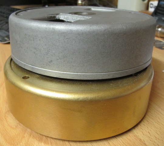 There had never been any paint on it as I could see, someone had used a puller to remove it flrom its motor and in doing so damaged one of the two windows.