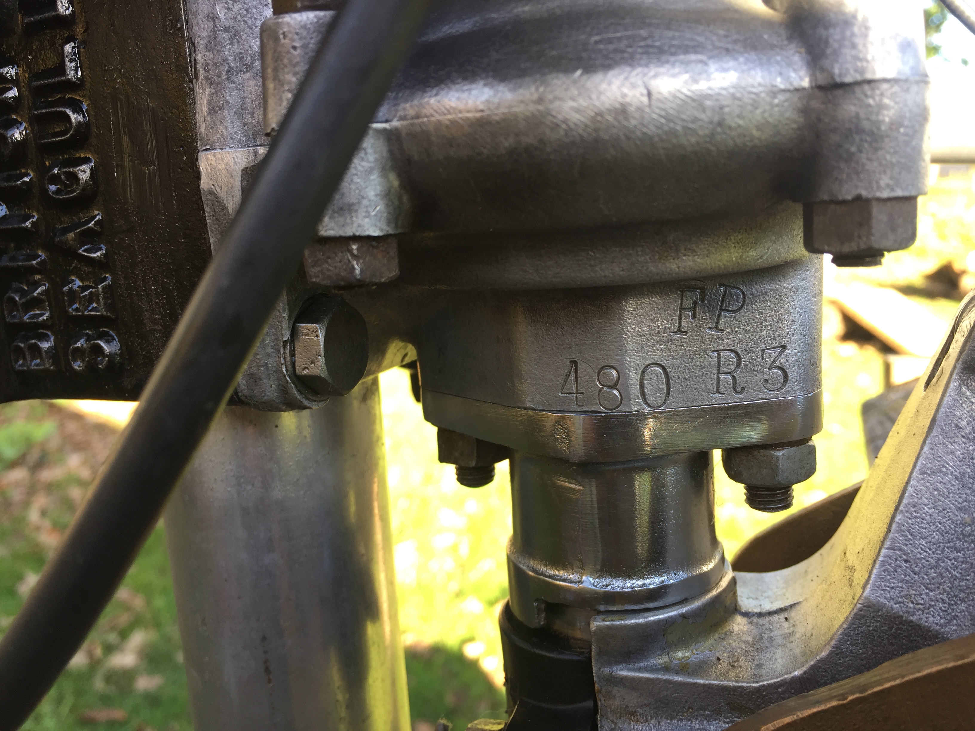 Electronic ignition, Bing carb, Forty featherweight, 1982, the R is the mysterious bit you'd expect to see it as the last character, even though none of the records I've seen, mention CDI's & Bing carbs being used on the same Featherweight motor, though they could of been using up the last few Bing carbs during 82.