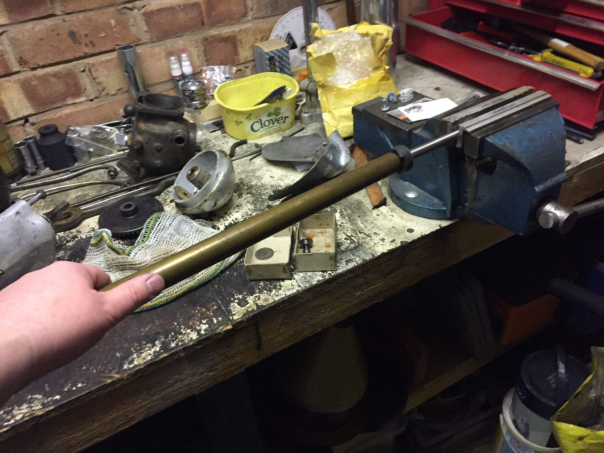 Now all cleaned out, just that broken bolt to have a look at. Good news is that there is no wear at all in the bushes.
