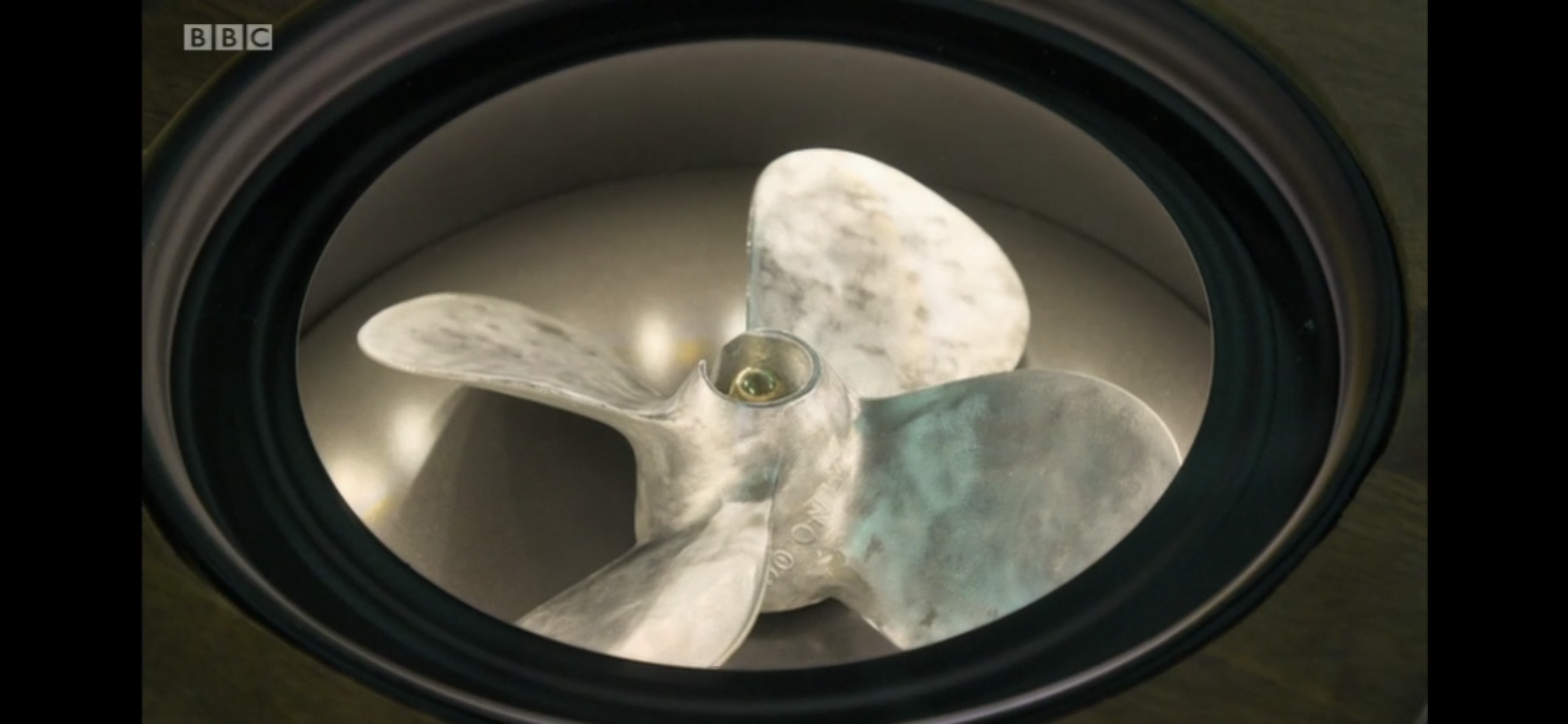 Walked past the telly today and spotted this! An old propeller from an unnamed outboard that was being upcycled into a table.