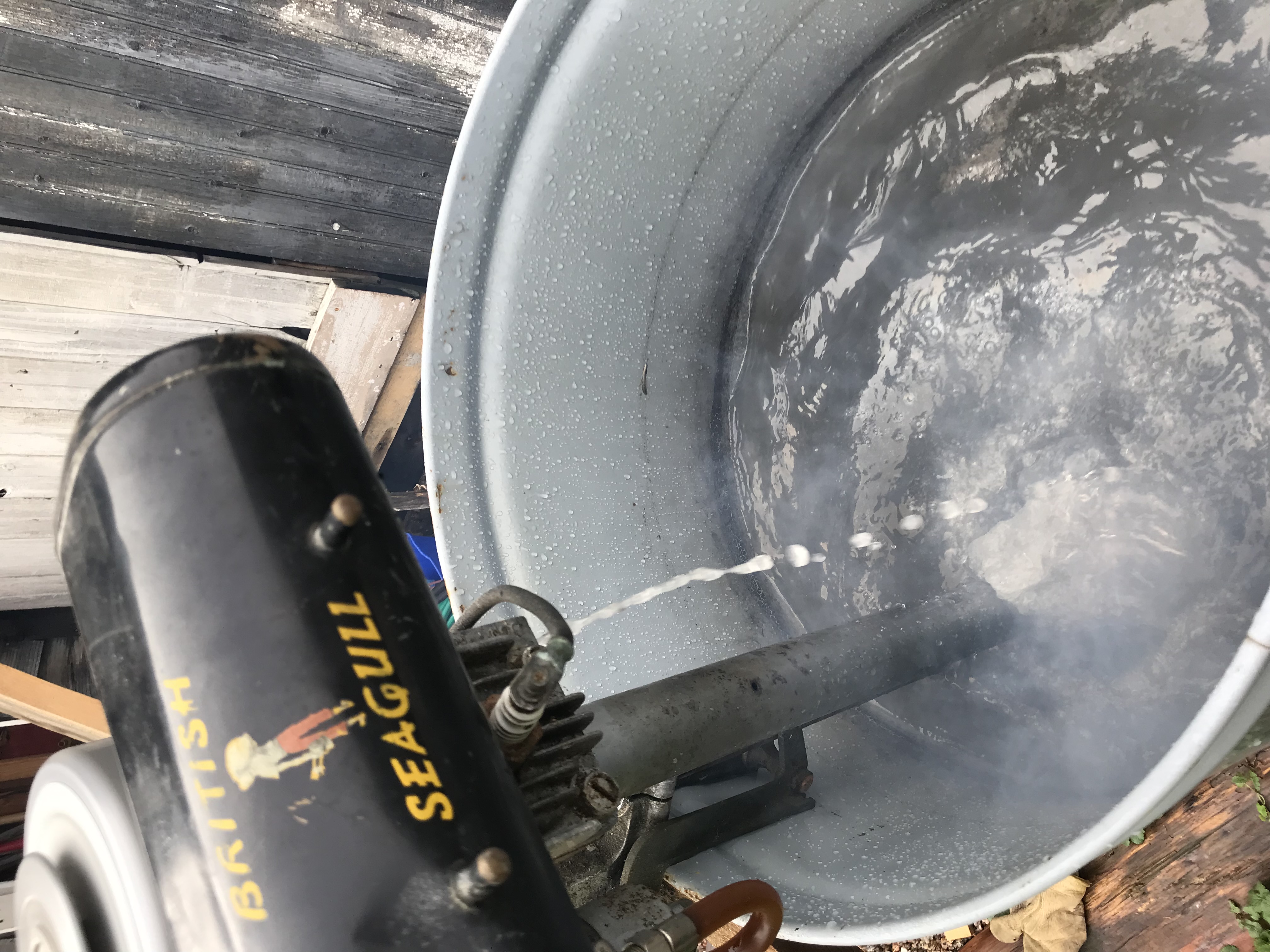 So I tried several of the rotors for fit and found one that was snugger than the others. It went together just like it should and this time I removed the prop. IT WORKS! I barely had enough gas left in the tank to fill the carburetor, but got it running and below is a pic of the 40+ pissing. It stopped when I idled it, but I think that’s expected.
