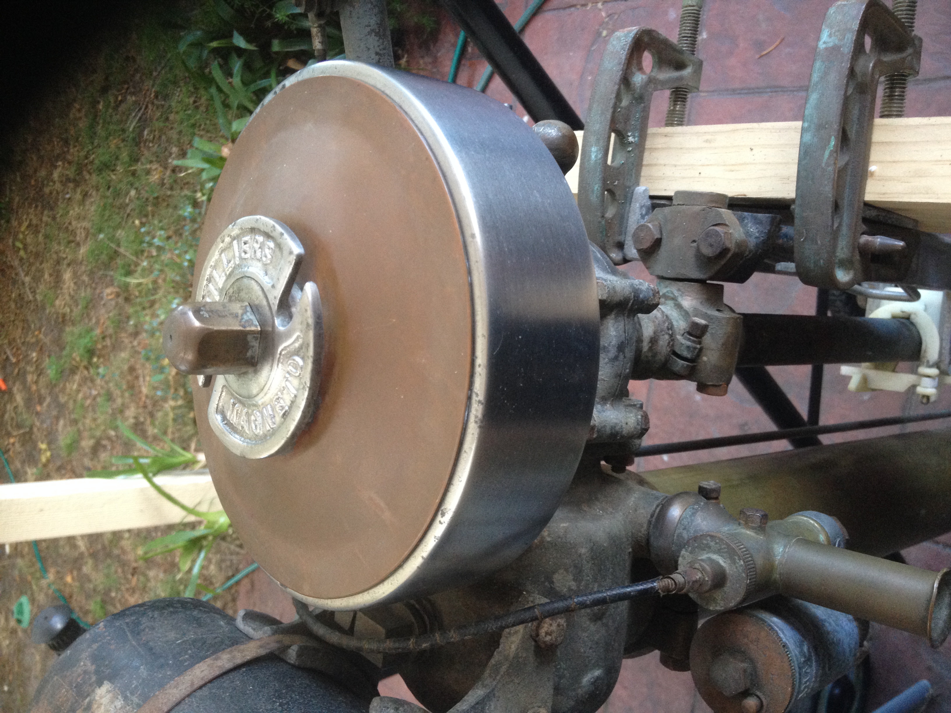 The height adjustor I believe is a Marston component. That motor in question was painted completely blue when l found her but she does have a steel tank someplace to reacquainted with. Interestingly none of the three steel tanks l have have any remains of a decal so there is a mystery why some have decals and others not. A theory is circulating that they were cleaned up by the likes of Arthur Bray and the decal was added then but if that was so why was the remains of the side bracket left attached to the drivetube if they where pimped up for resale? We need to find some more period photos to work out what is going on with the decals.