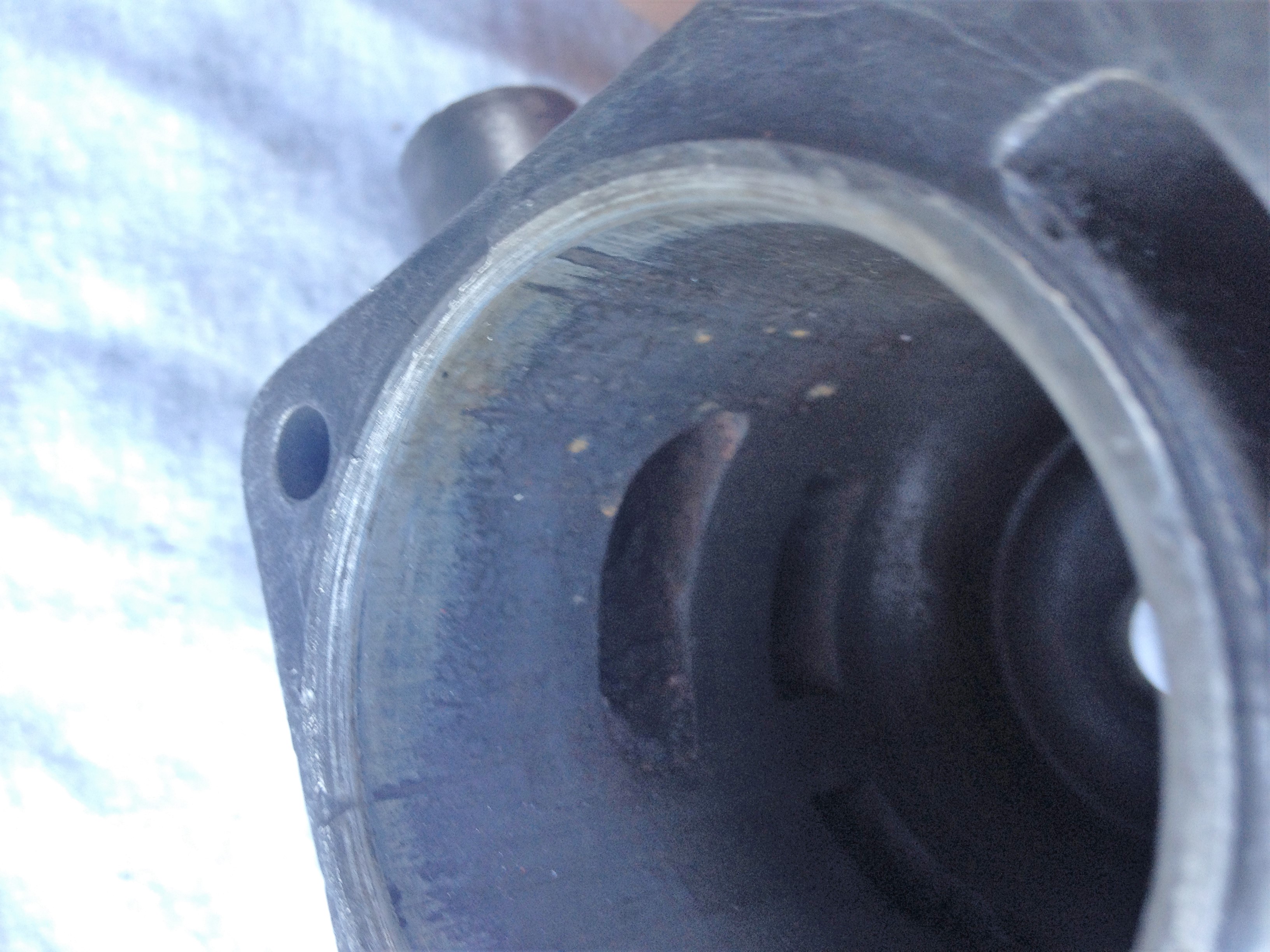 Engine didn't feel quite right to turn albeit that there we no odd noises, and there was some compression. Open inspection revealed a hornets nest (no uncommon in Qld), moisture in the bore and stuck rings.