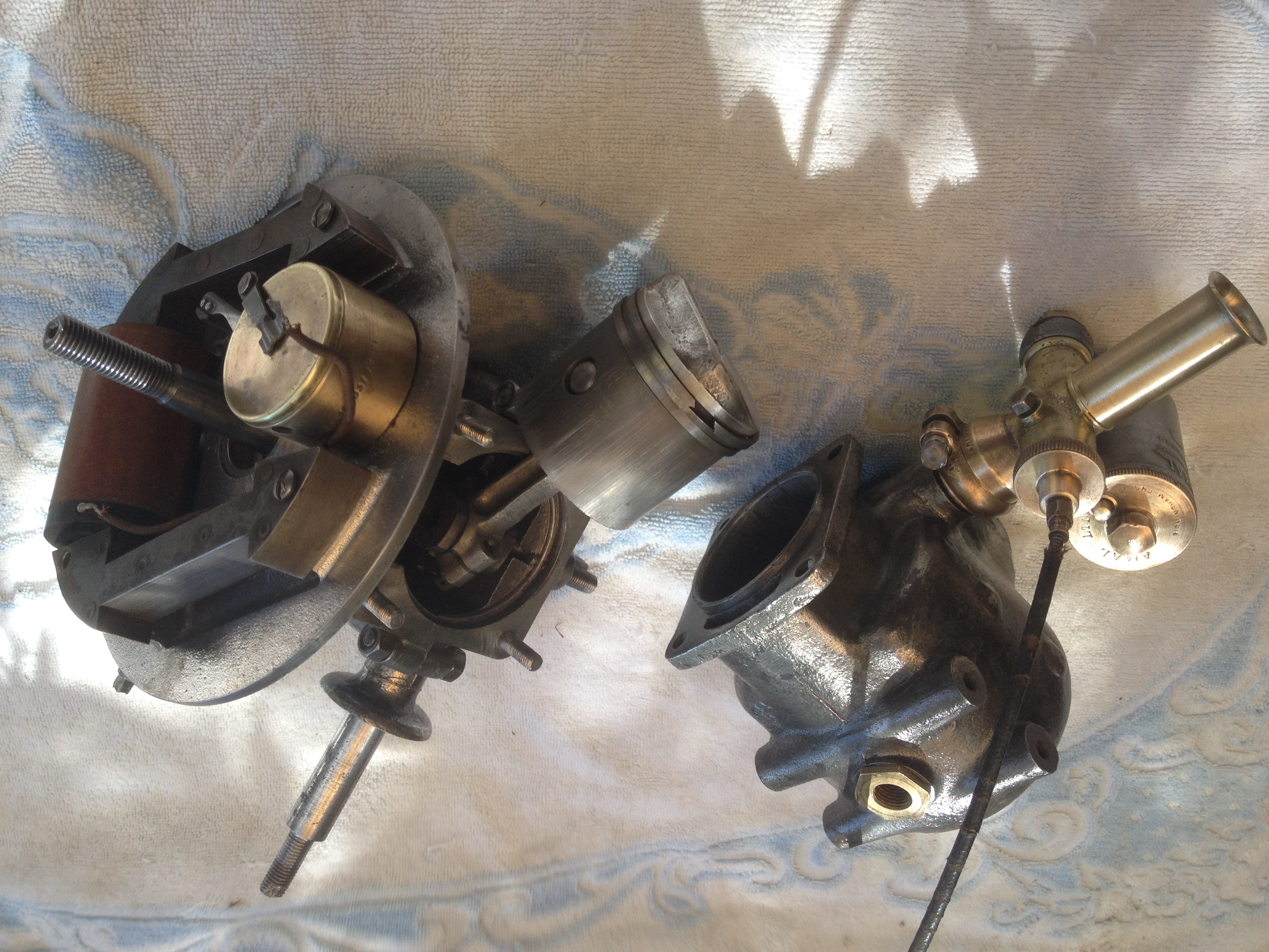 Attending to the carburettor and magneto.