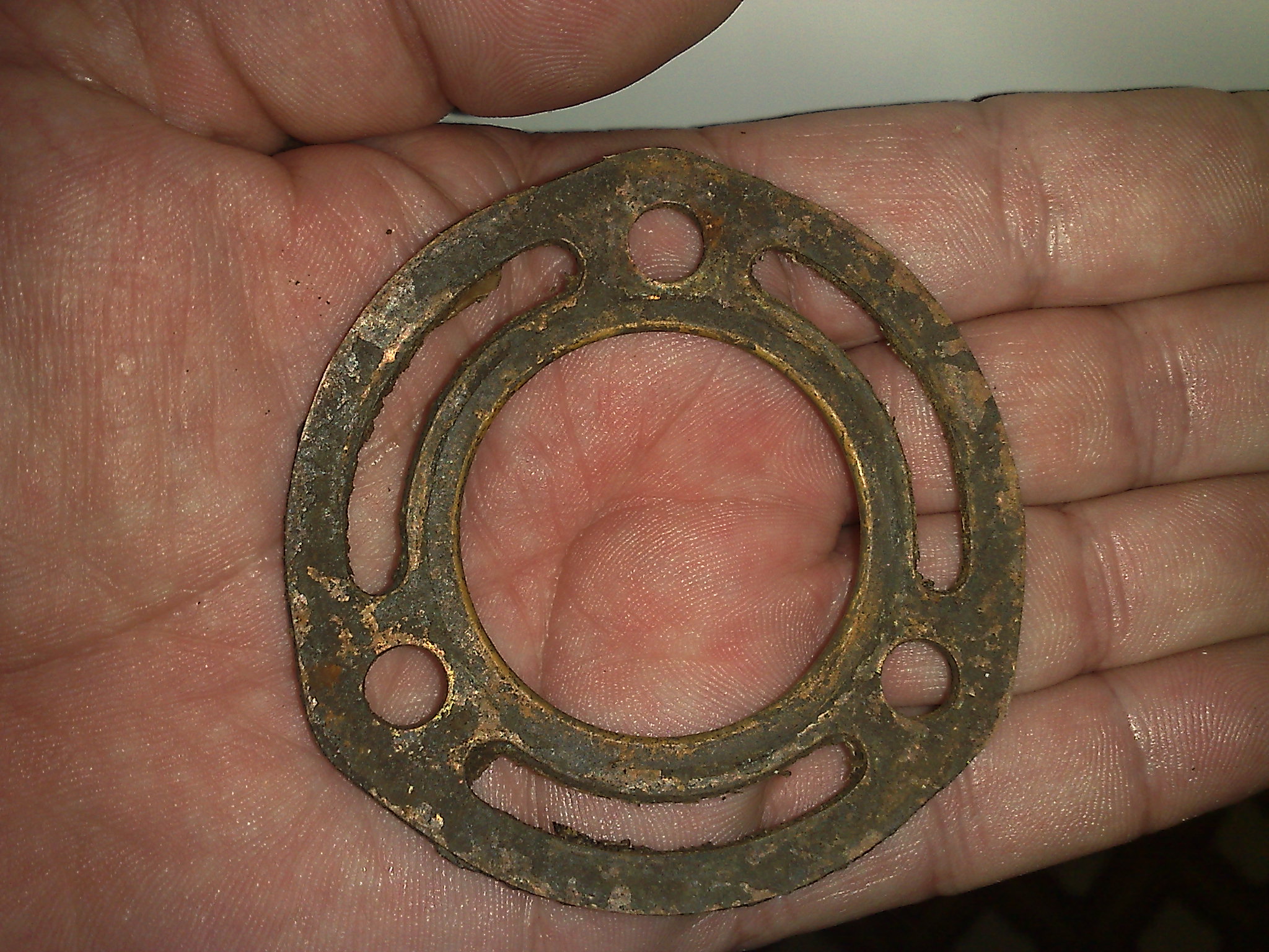Interesting head gasket by the way. Asbestos between very thin copper. The copper is folded where the combustion chamber is. A very delicate thing actually.