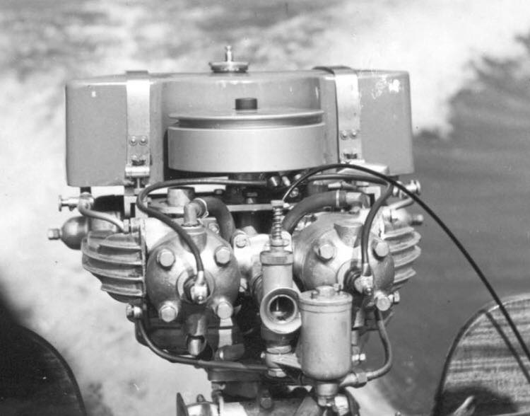 Has anybody got one of these? Early 1950s, 2 forward facing cylinders not unlike the super single, twin cranks geared to a central shaft. Does anybody have a photo?