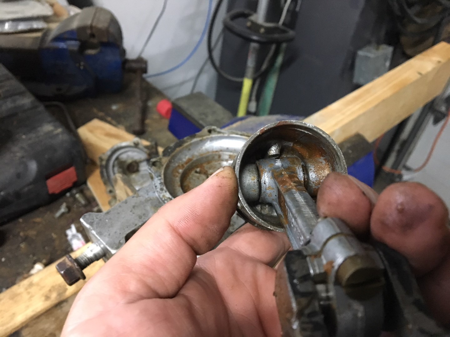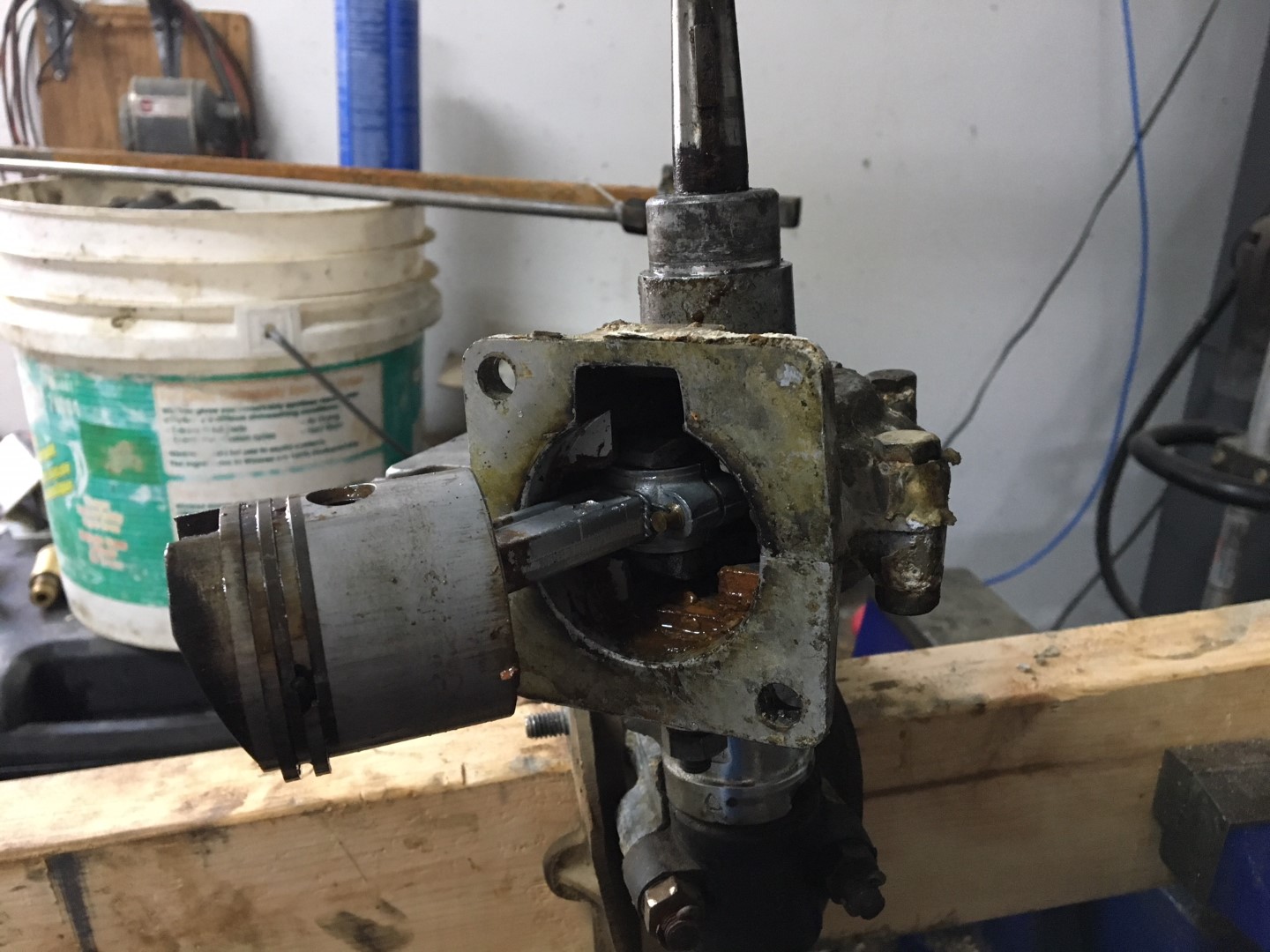 The thought has occurred to me that all I may be doing here is performing an autopsy rather than trying to get it running again. The list of things I found so far are broken tiller handle, I'm guessing that it had a leaky head gasket and fuel float based on the goop pasted on these parts.