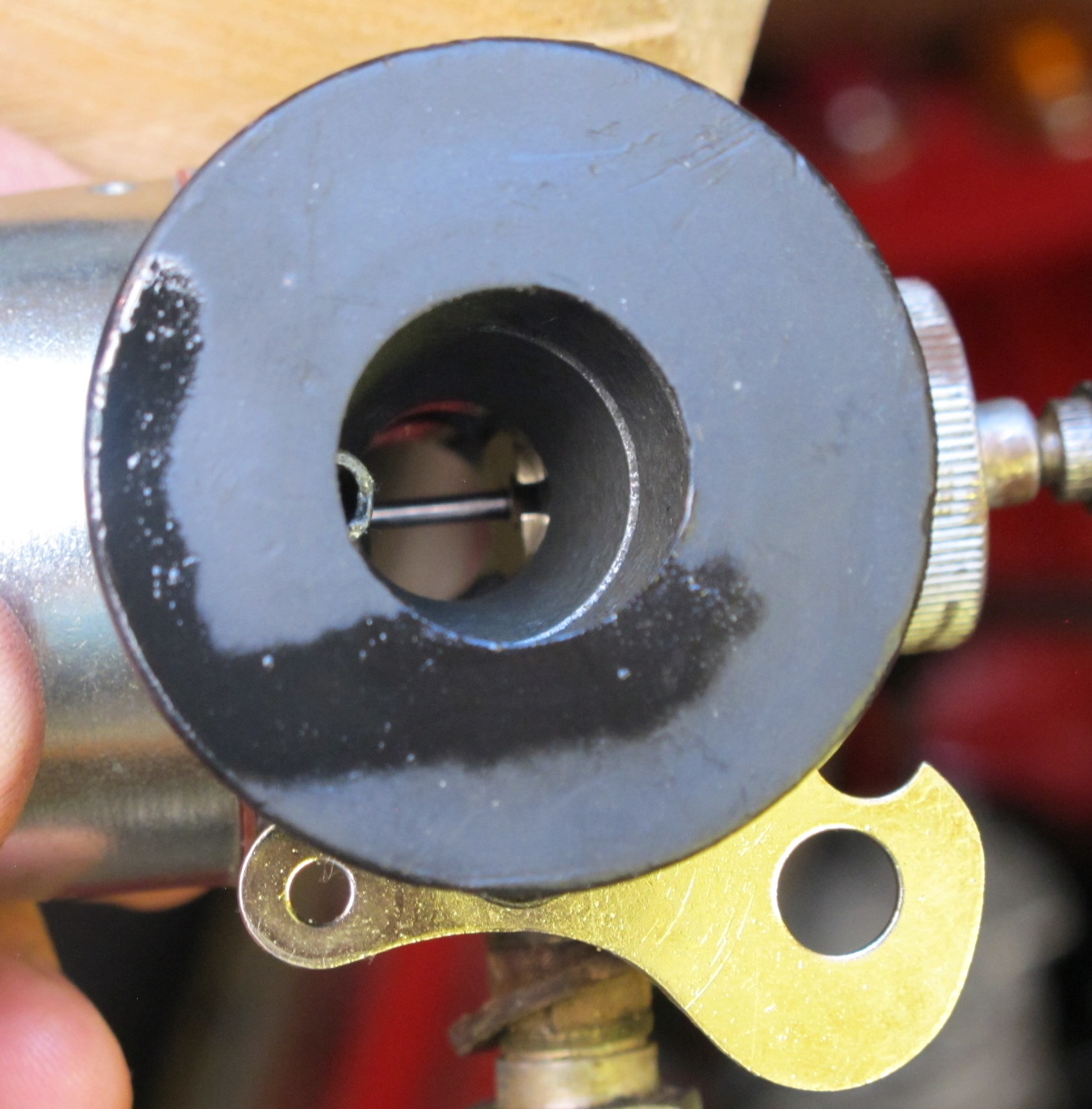 I needed to remove the adjustment lock nut and screw the top cap right in, then I can get the slide to work but as soon as I fit the adjuster on to the tiller arm, the bending of the cable opens the throttle slide, that is the last picture