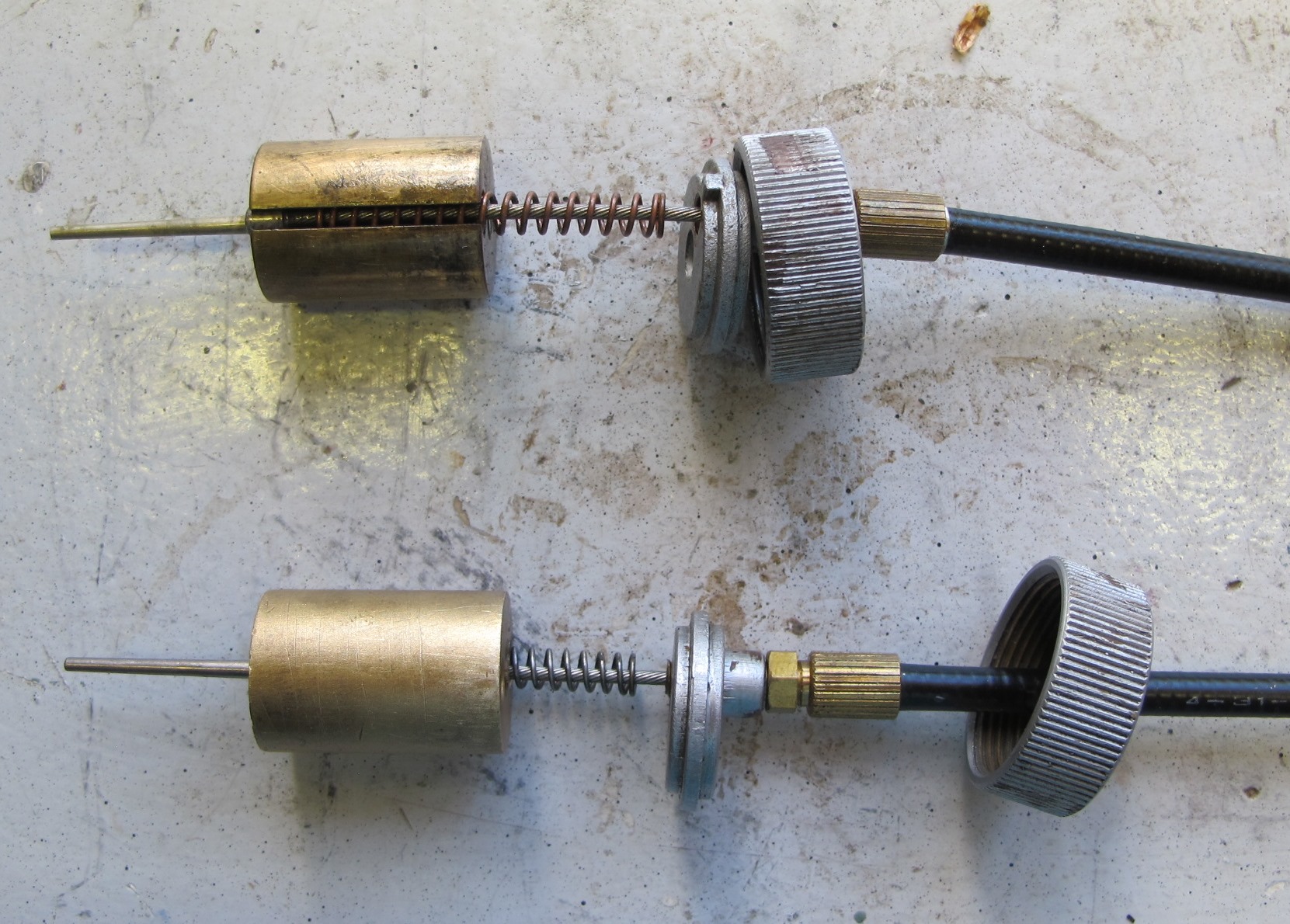 Check with John. I always make my own. Bicycle shops have the cable and fittings and l use the old ends to make a mold for a new one using lead. Make sure you tin the end of the cable first. I drill a hole in timber for the bullet end and use blutack or clay for the round end. There is a bit of burning or smoke but it works effectively. I've had to re-do it a couple of times to get the correct length!